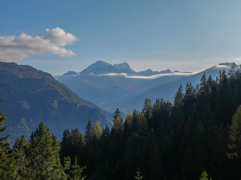 Der Blick von der Ducanfurgga über das Val da Stugl, im Hintergrund liegen die Bergüner Stöcke:
