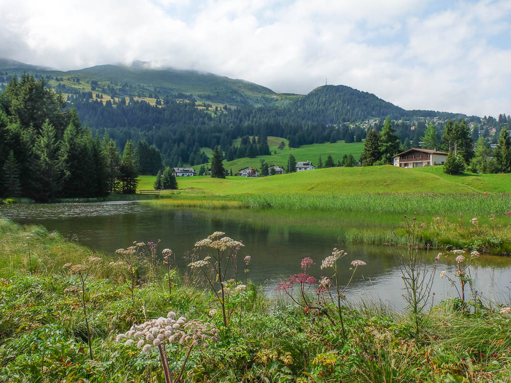 Der Blick vom Gipfel des Lenzer Horns auf Lenzerheide und den Heidsee: