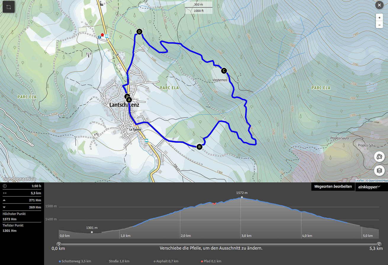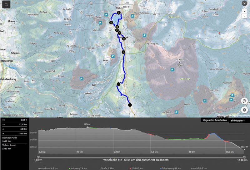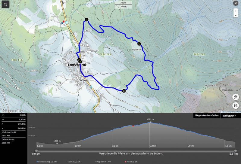 Um 18.20 Uhr sind wir wieder zurück in Davos Wiesen. Fünfzehn Minuten später bringt uns der Postbus zurück nach Lenz. Die Tour in der Übersicht: