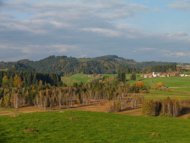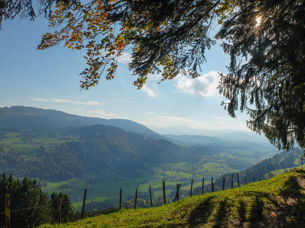 Dem ist nichts mehr hinzuzufügen! Nachmittags wandere ich zusammen mit Guido auf den Kapf bzw. um den Kapf herum. Die Streckenlänge beträgt ungefähr 10 Kilometer. Der Blick auf die Nagelfluhkette während des Aufstiegs zum Kapf: Das Weissachtal vom Gipfel des Kapfs aus gesehen: Die Weiden von Berg: Das Naturschutzgebiet Moos bei Oberstaufen: Genuss gibt es aber nicht nur für die Augen, auch der Gaumen kommt auf seine Kosten: Hagebutten, Himbeeren, Samenmäntel einer Eibe, Brennnesselspitzen, Blüten des Orangeroten Habichtskrauts, Salatblätter und ein kleines Stück roter Rettich bilden ein wildes Allerlei. Bilder der drei letztgenannten Leckereien: Salat und roter Rettich wachsen am Waldrand in dem wilden Garten, den ich schon ein paar Mal erwähnt habe. Das gibt es sonst noch so zum Essen: