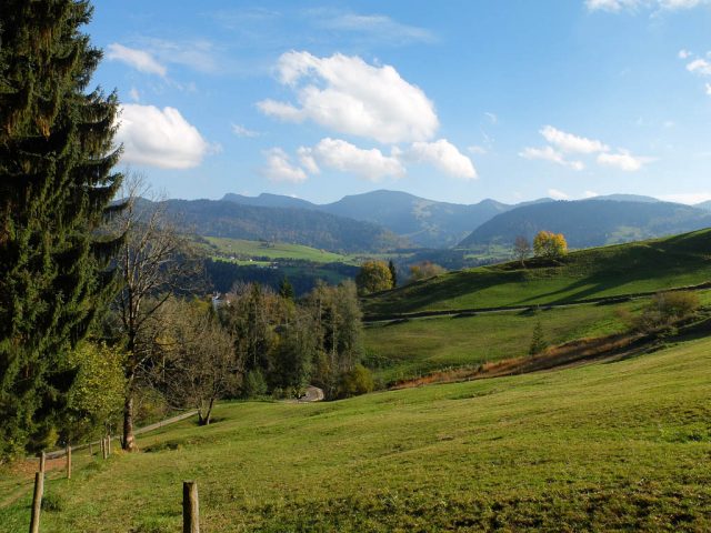 Am Abend beschäftige ich mich ausnahmsweise einmal nicht mit dem Thema „Bergsport“. In der Bücherei habe ich am Montag ein Buch von David Perlmutter, dem Autor von „Dumm wie Brot“, entdeckt, in das ich mich vertiefe. Der Titel lautet „Scheissschlau – Wie eine gesunde Darmflora unser Hirn fit hält“. Das Buch liest sich sehr gut und liefert einige interessante Denkanstöße. Vielleicht schreibe demnächst mehr dazu. Den Vormittag verbrachte ich mit Einkaufen und Putzen, zwei Tätigkeiten, die mir durchaus sehr viel Freude bereiteten. Vor allem, wenn kein „Muss“ dahinter stand. Na ja, das Einkaufen war heute eigentlich schon notwendig, meine Lebensmittelvorräte waren in den letzten beiden Tagen doch ganz schön geschrumpft. Am Nachmittag spazierten Guido und ich von der Talstation der Hochgratbahn zur Schilpere-Alpe, die Streckenlänge betrug 6 Kilometer bei 330 Höhenmetern. An der Alpe war schon alles für die Sommersaison vorbereitet, Tische und Stühle standen bereit und die Kinderschaukel war wieder montiert. Da Guido und ich allein dort waren, ließ ich es mir nicht nehmen, auf der Schaukel Platz nehmen und ein Weilchen zu schaukeln: Das ging einigermaßen, auch wenn die Schaukel für meine langen Beine ein bisschen zu weit unten hing! Als Kind war die Schaukel des in der Nähe unseres Hauses gelegenen Spielplatzes einer meiner Zufluchtsorte, wenn es nicht so lief, wie es laufen sollte. Hier konnte ich wunderbar entspannen und der Realität entfliehen. Das funktionierte auch heute noch. Die oberhalb der Alpe liegenden Kapelle: Der Blick von der Kapelle auf die Alpe: Selbst dieser kurze Spaziergang ließ das persönliche Energieniveau deutlich ansteigen. Am Abend las ich dann bei Ulrich Warnke, warum das so war: