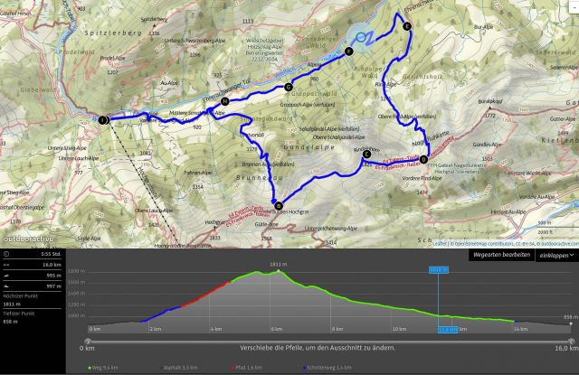 Da auch für heute wieder Sonnenschein und Temperaturen um die 30°C vorhergesagt und unter diesen Bedingungen lange Wanderungen ziemlich anstrengend waren, hatten Guido und ich uns gestern Abend spontan entschlossen, den Tag vor allem im klimatisierten Innenraum eines Busses zu verbringen und bei Burkhard Reisen eine Tagestour in die Schweiz gebucht: Die große Schweizfahrt mit Bus, Schiff und Zug – Auf den Spuren des Nationalhelden Wilhelm Tell. So sah die Fahrstrecke in der Schweiz aus: