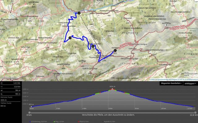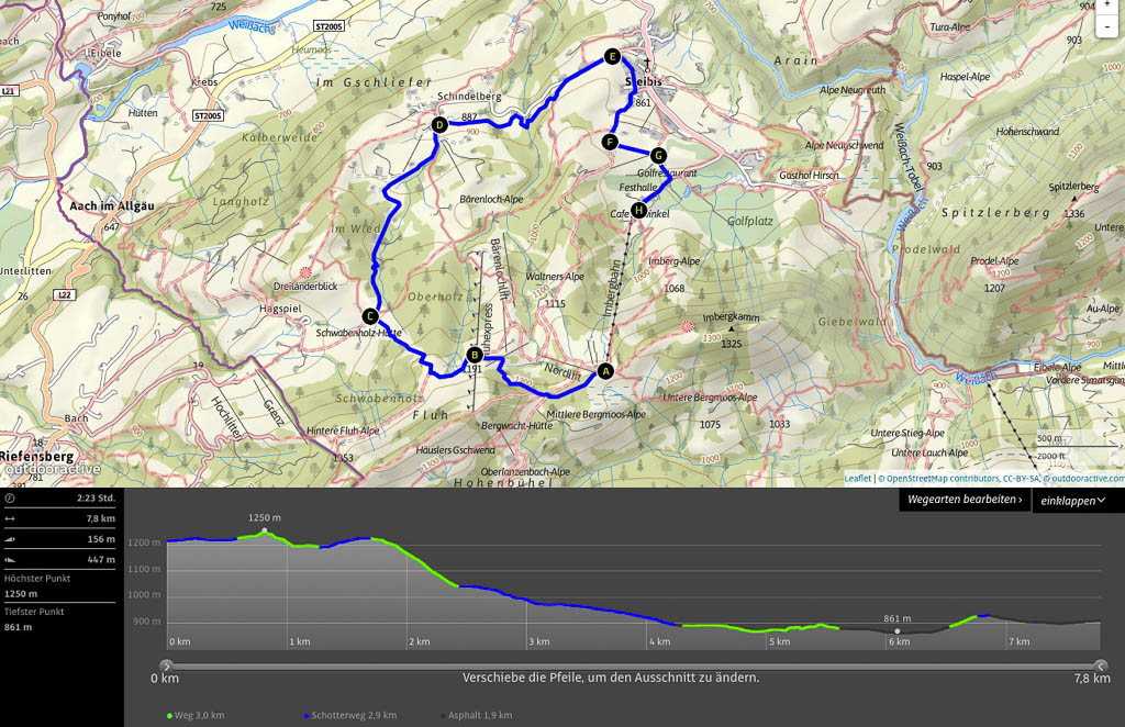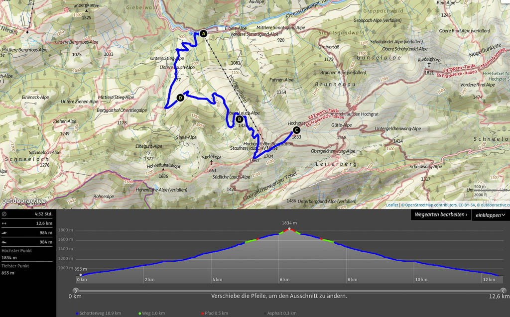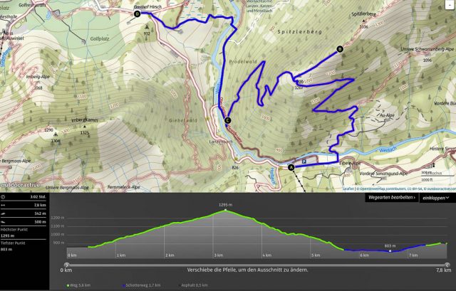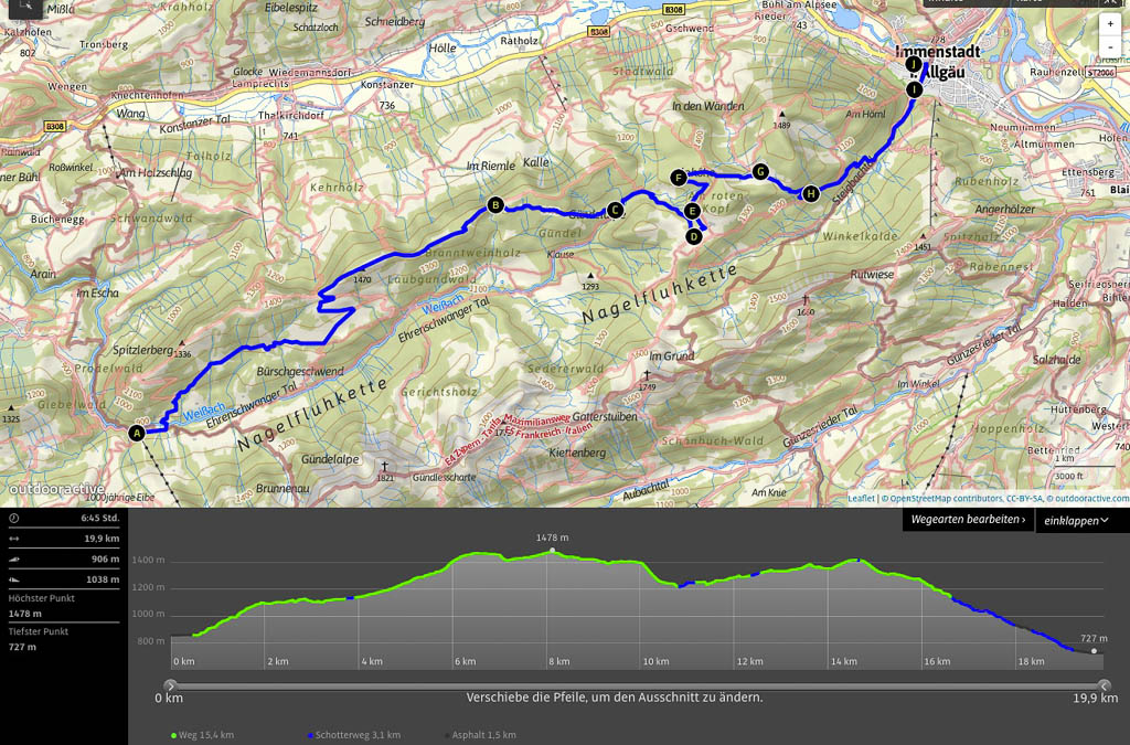 Um 14 Uhr startete ich zusammen mit Guido von der Talstation der Hochgratbahn aus zu einer Wanderung. Es ging über den Prodelkamm und den Denneberg zum Klammen. Hier entschieden wir spontan, nicht zur Talstation zurückzukehren, sondern weiter nach Immenstadt zu wandern: