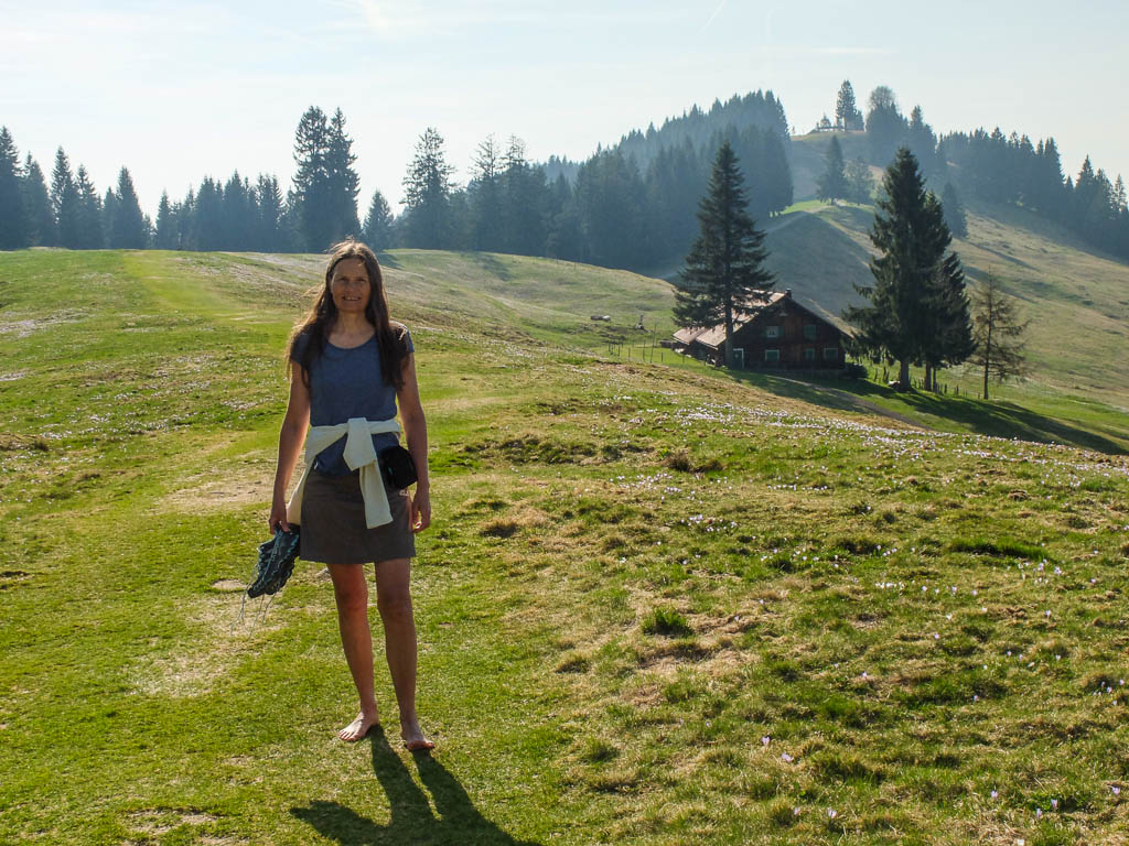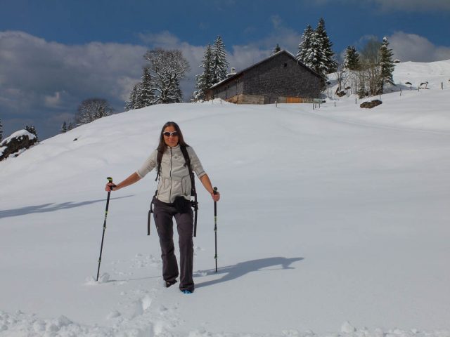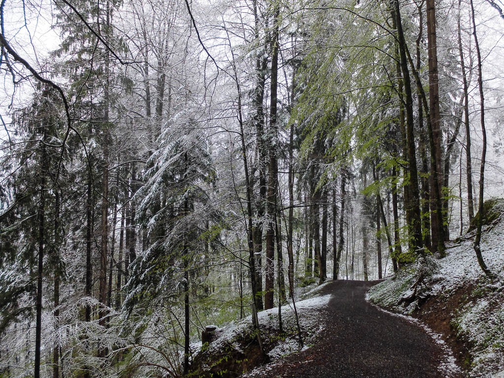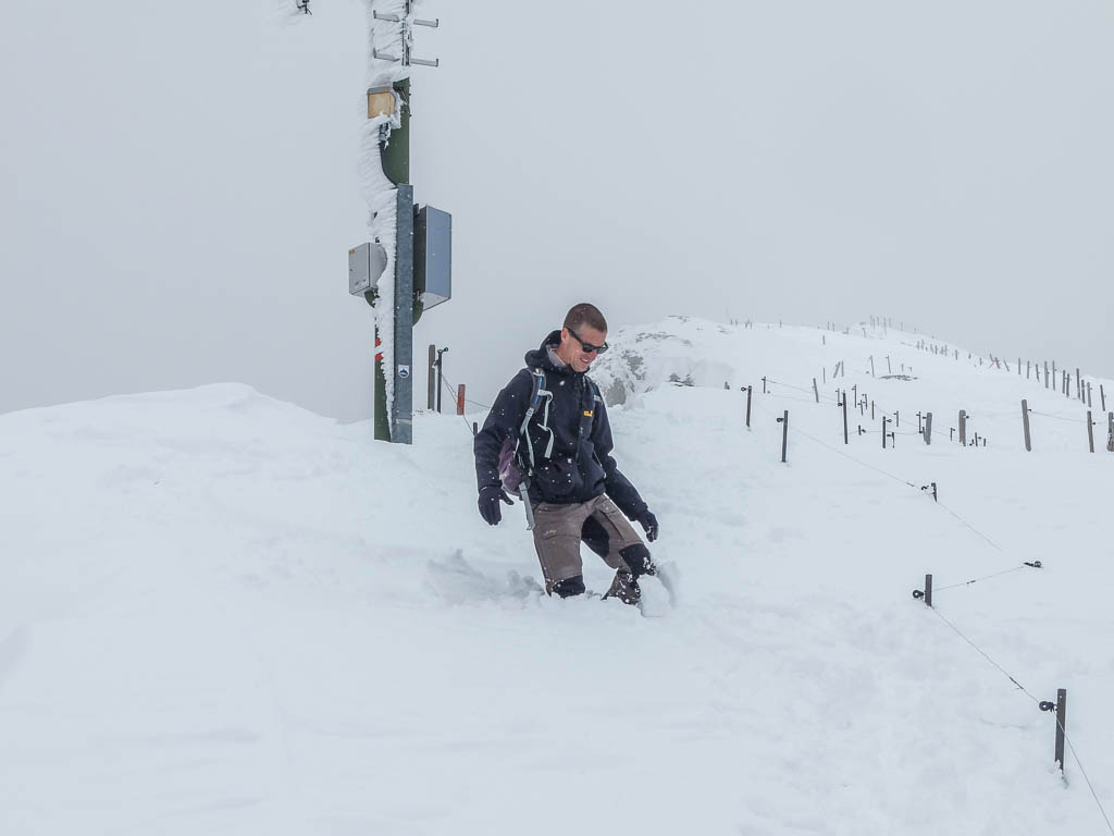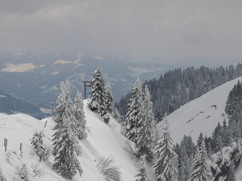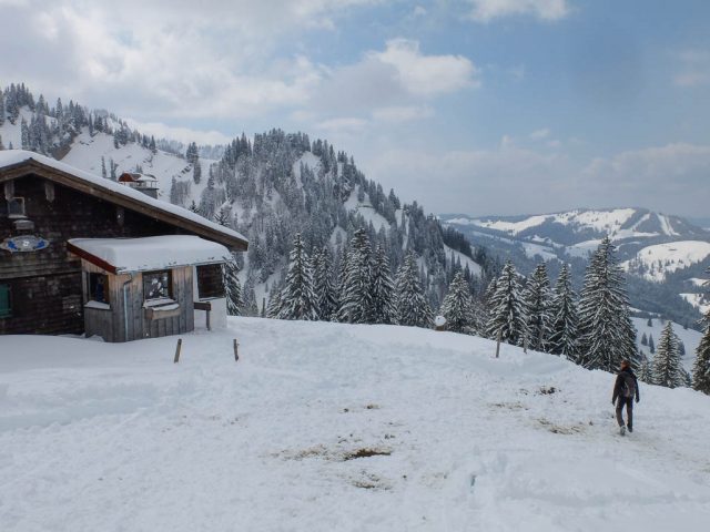Die Avocados „Hass“ hatte ich aus dem regionalen Supermarkt, die Avocados „Fuerte“ von Orkos. Beide Sorten kamen aus Spanien und waren von sehr guter Qualität. Avocados kombiniert mit Gemüse aller Art, das ergab für mich seit Jahren immer sehr befriedigende Mahlzeiten. Neben all den leckeren Lebensmitteln, die heute auf meinem Speiseplan standen, gab es während unserer Wanderung von der Bergstation der Hochgratbahn hinunter zur Talstation auch eine üppige Portion Lichtnahrung. Wir wollten übrigens zuerst einen kleinen Abstecher hinauf zum Gipfel machen, sind von diesem Plan aufgrund der Schneemassen auf dem Gipfelweg jedoch schnell wieder abgekommen: