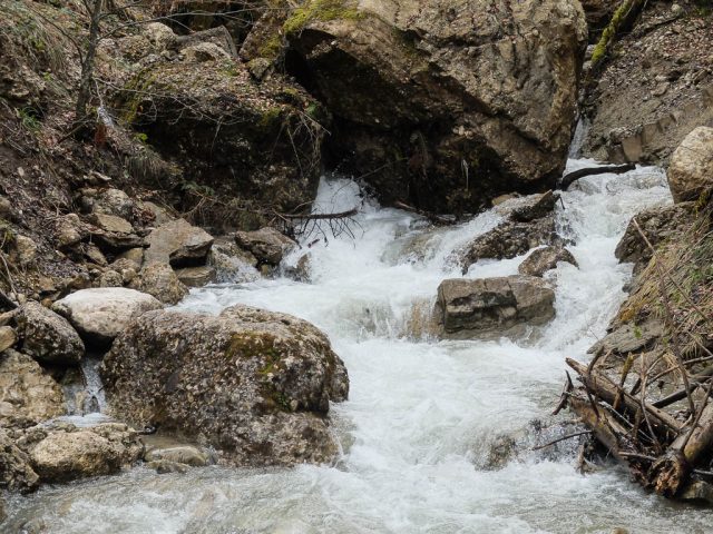 Es plätscherte und rauschte nach dem gestrigen Regentag und der Schneeschmelze überall sehr heftig. Der Horbach und die Weißach: