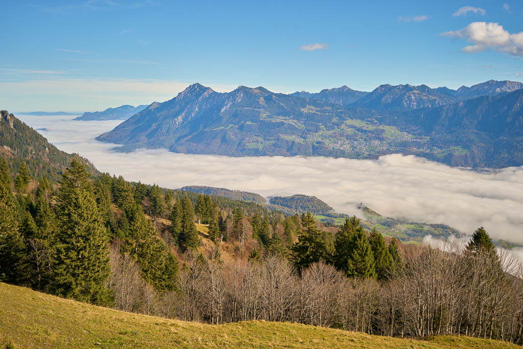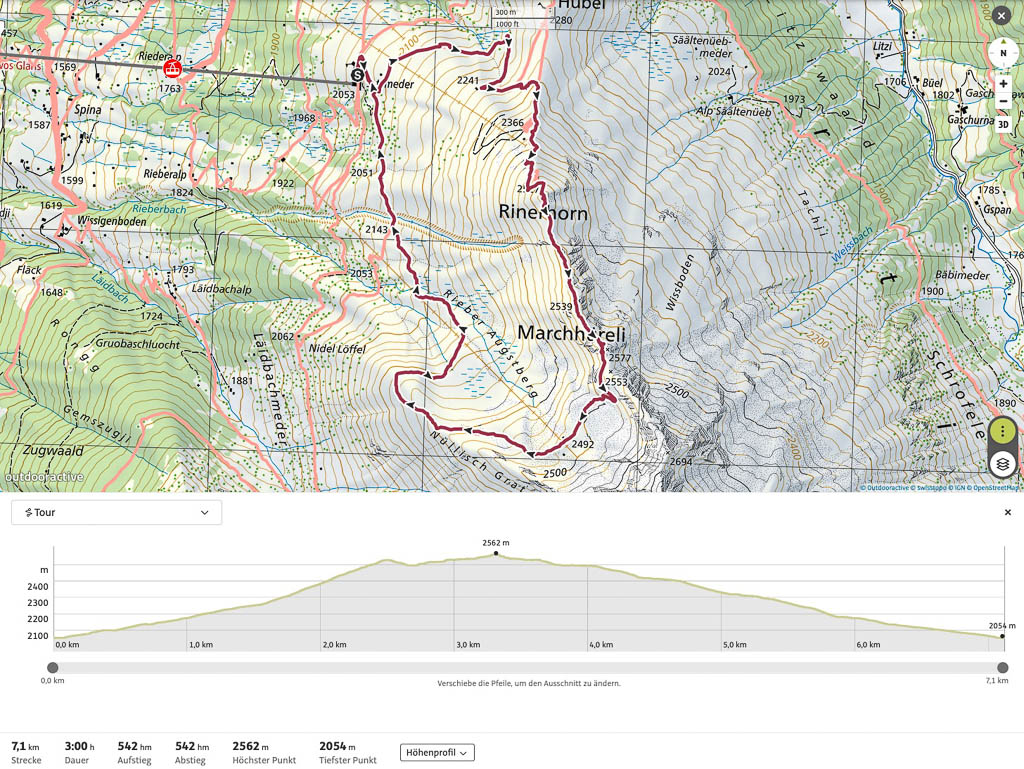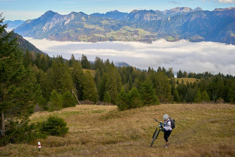 Von Jatzmeder aus gibt es zwei Möglichkeiten, das Rinerhorn zu erreichen. Der kürzere Weg führt über den Hubel direkt hinauf, der längere über Äbirügg. Wir wählen den kürzeren: