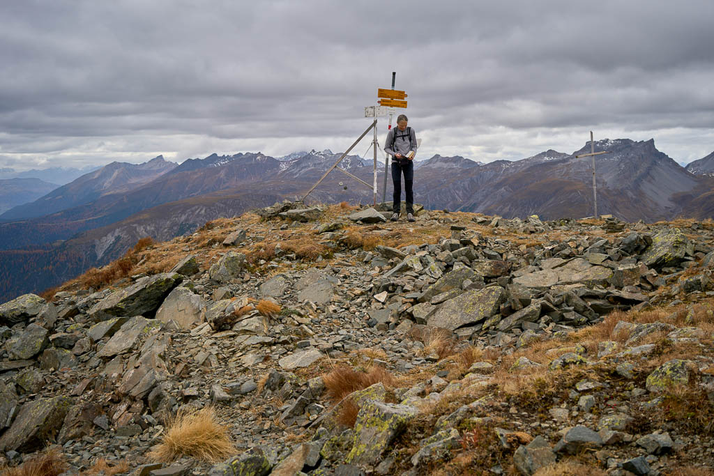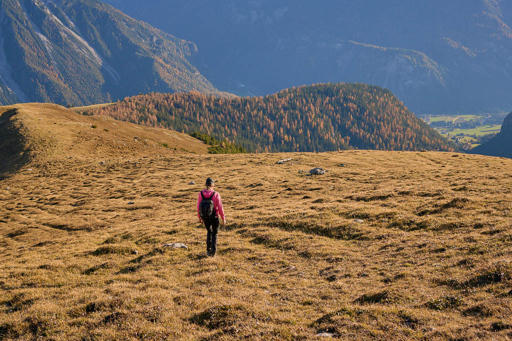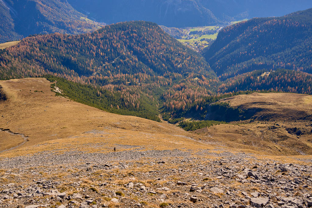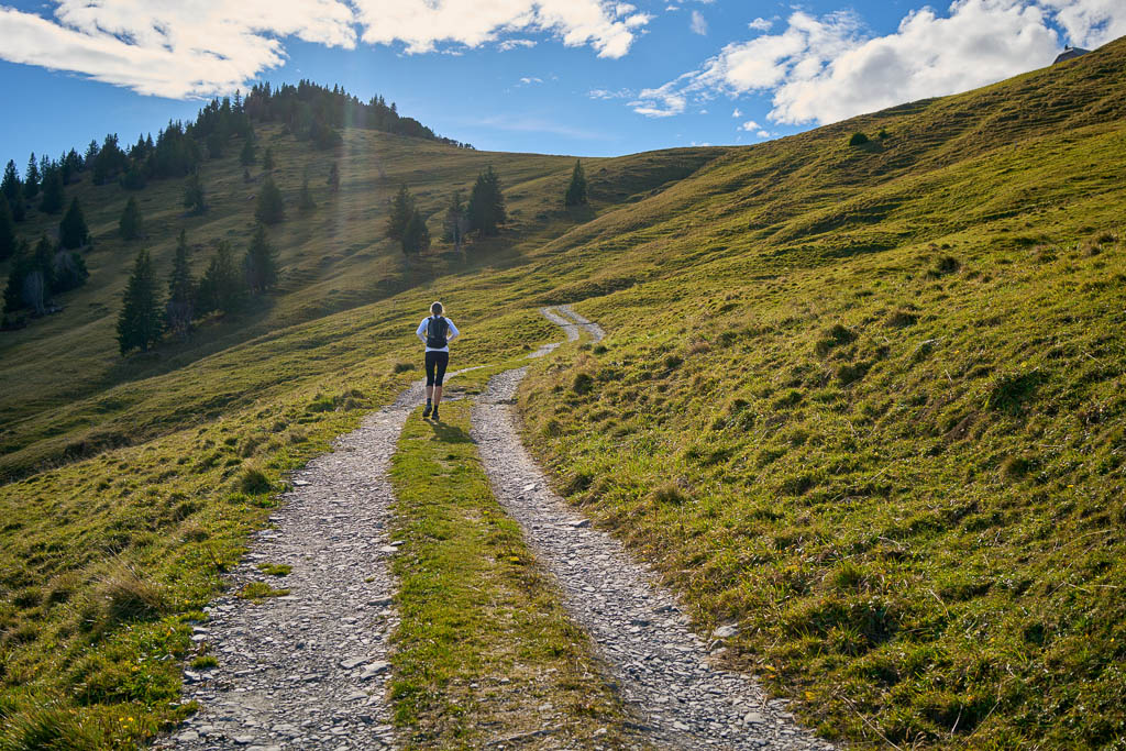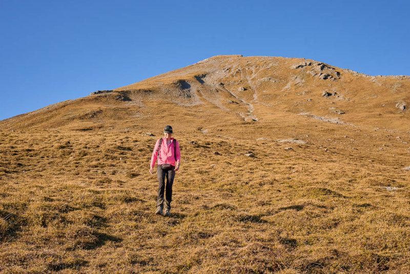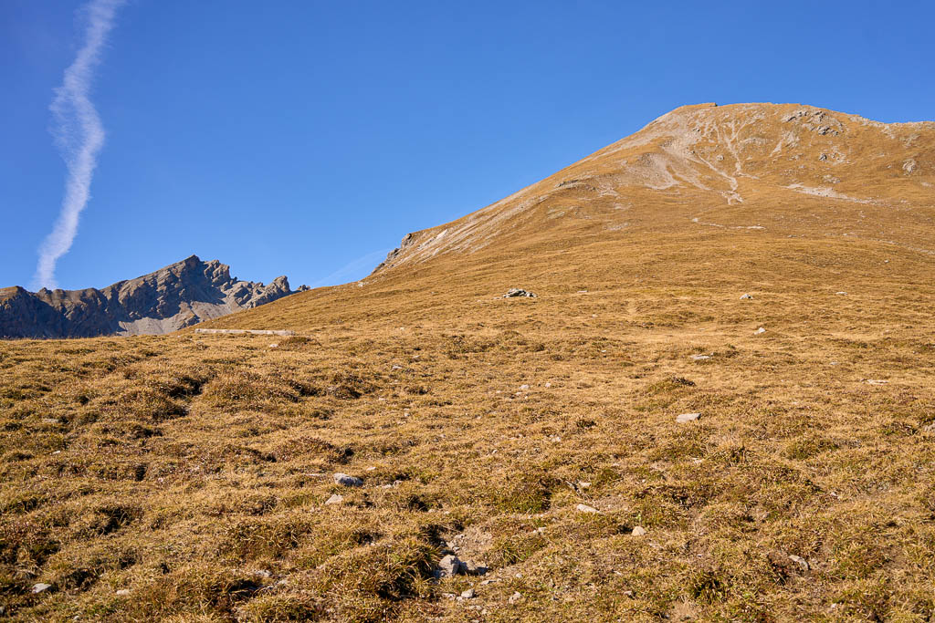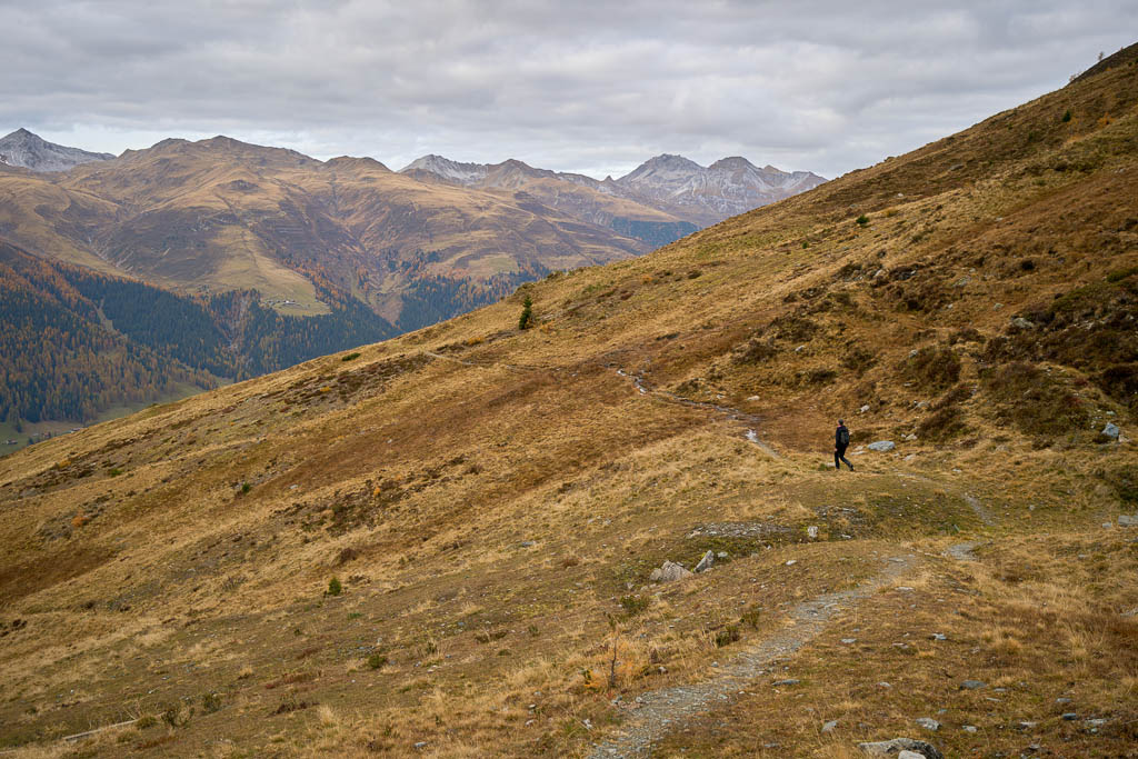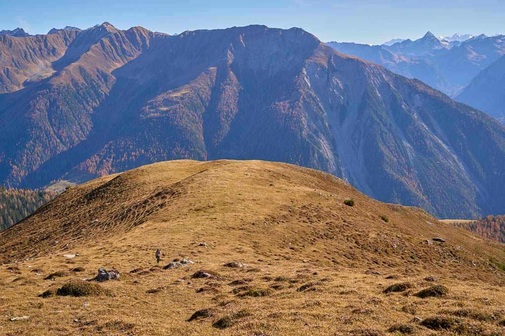 Guido erklimmt schon die Hänge des Tiauns, während ich noch über den Hübel laufe: