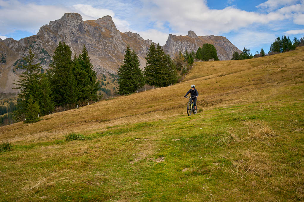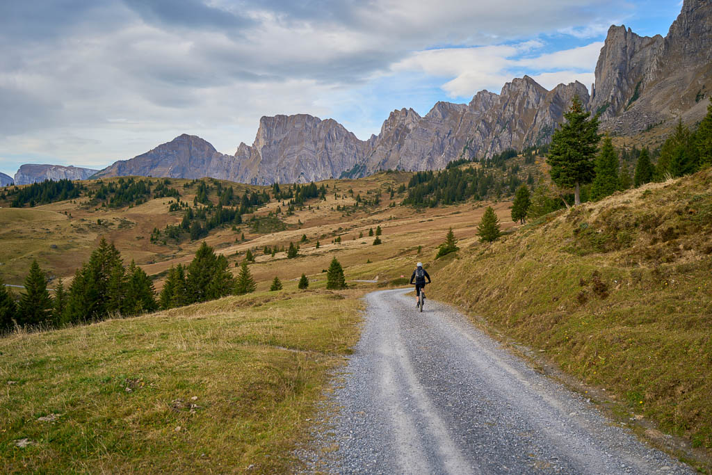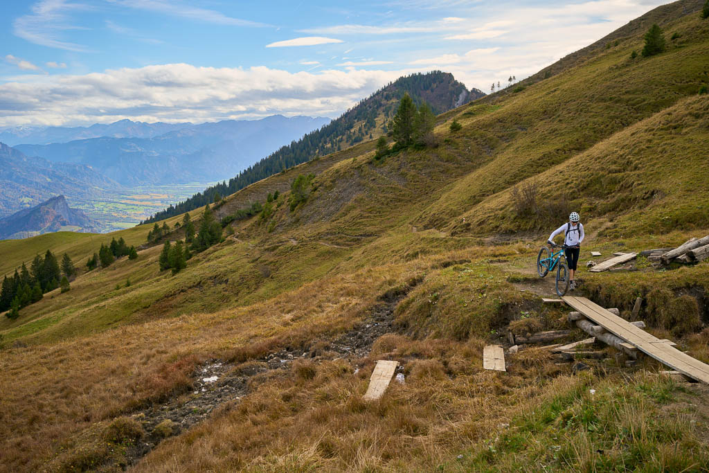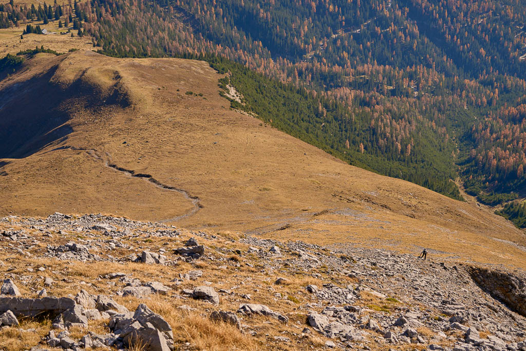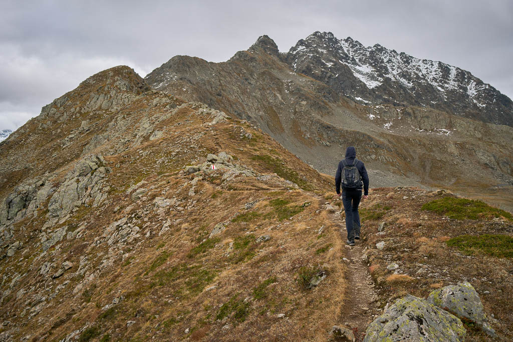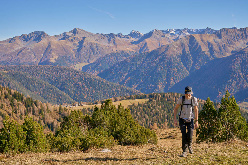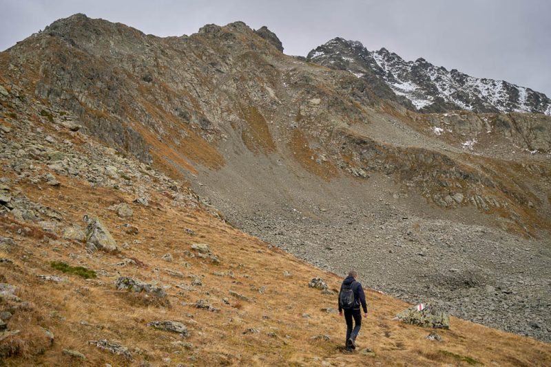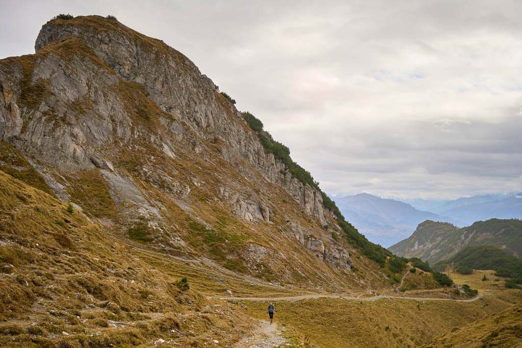 Guido erklimmt schon die Hänge des Tiauns, während ich noch über den Hübel laufe: