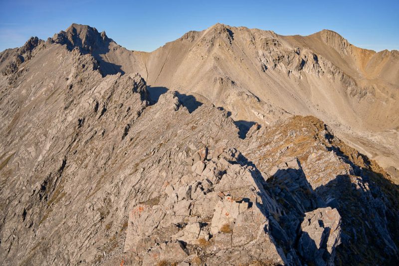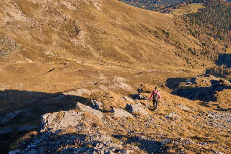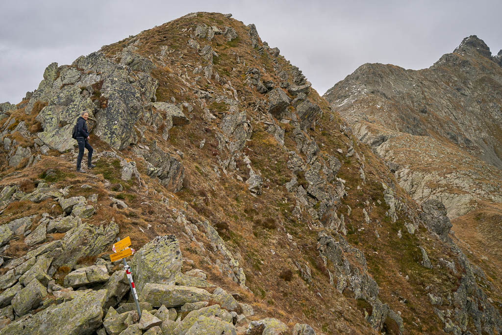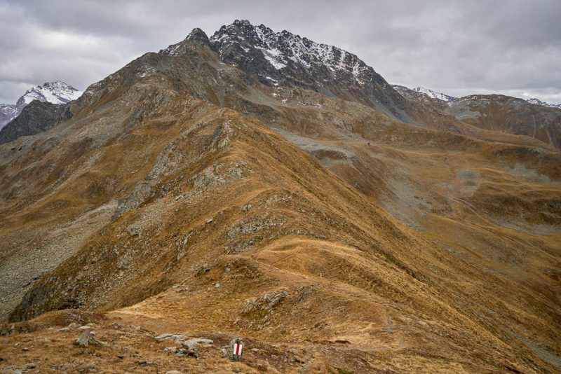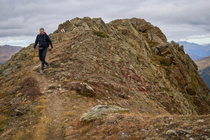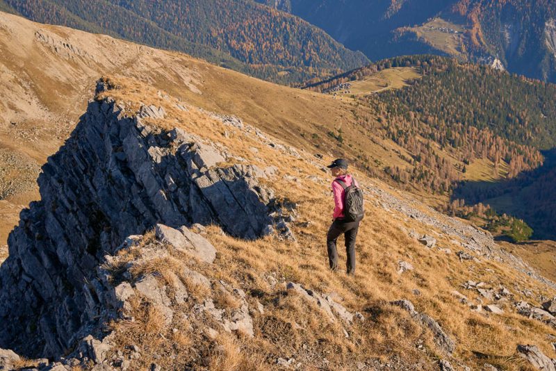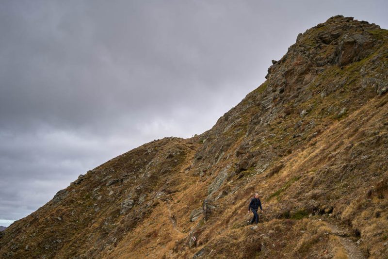Der Ostgrat ist etwas gestufter als der Westgrat, daher wird er auch gerne als Aufstiegsroute genutzt. Auf dem Weg zum Hübel: