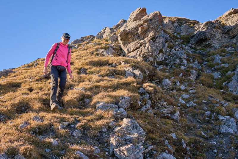Auch wenn es hier oben wunderschön ist, irgendwann müssen wir dann doch absteigen. Der Abstieg erfolgt über den Ostgrat: