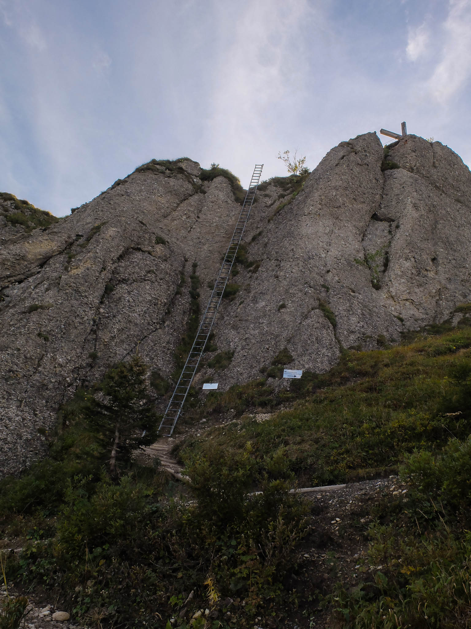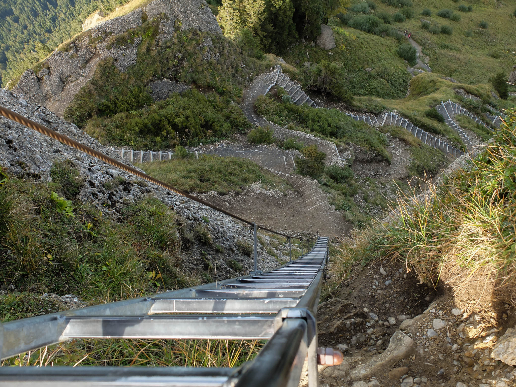 „Richtig“ alpin wurde es erst auf dem Weg zum Steineberg. Wer schwindelfrei war, konnte den Gipfel des Steinebergs mit einer Leiter erklimmen:
