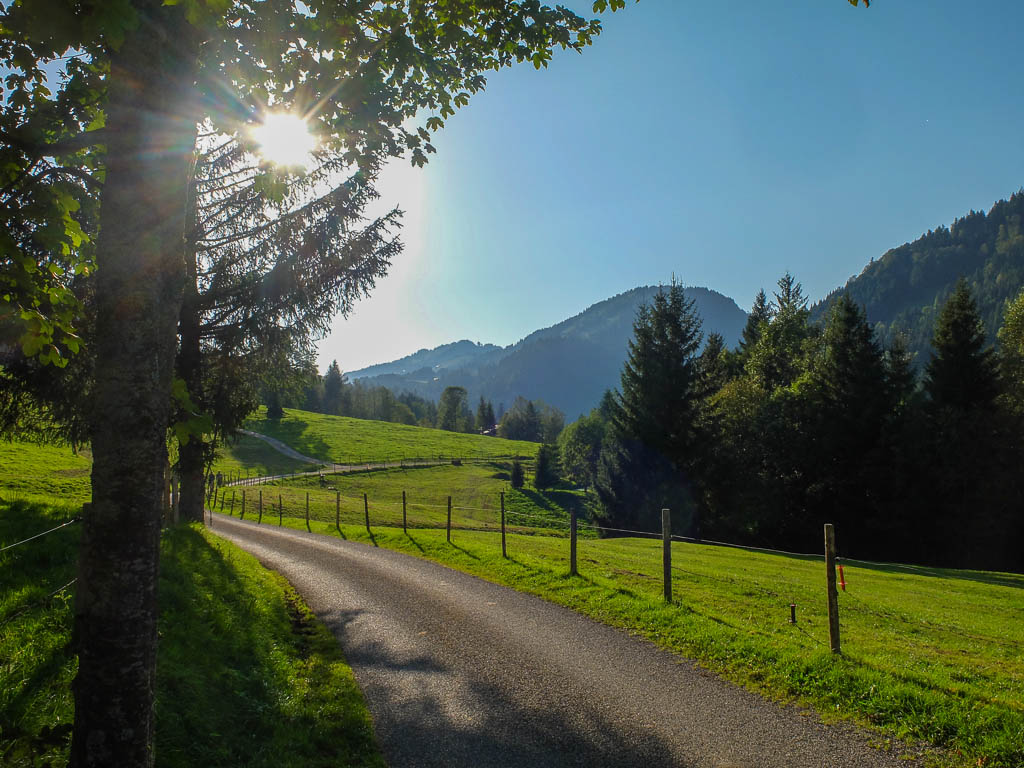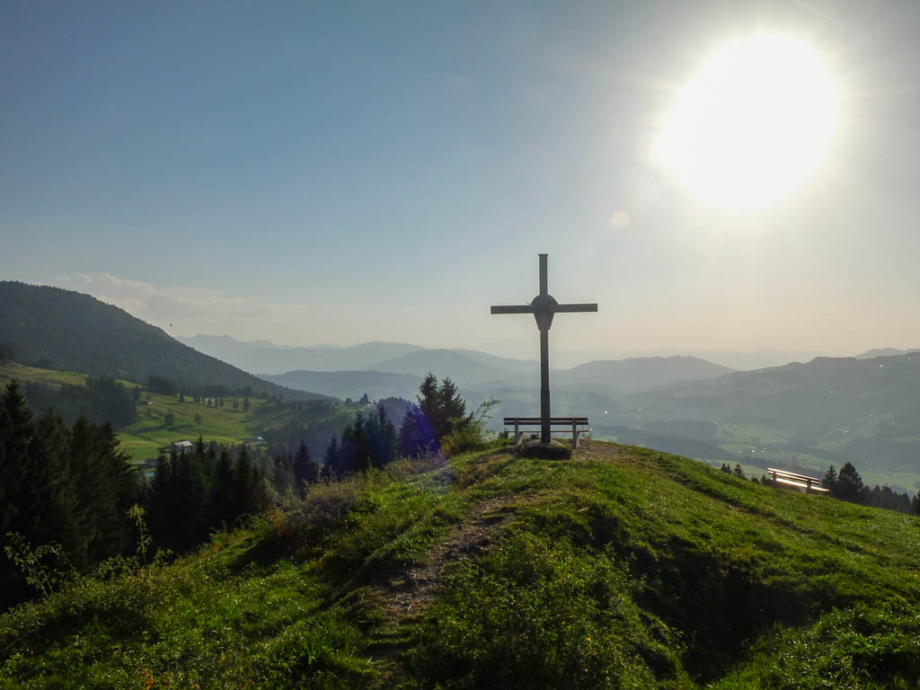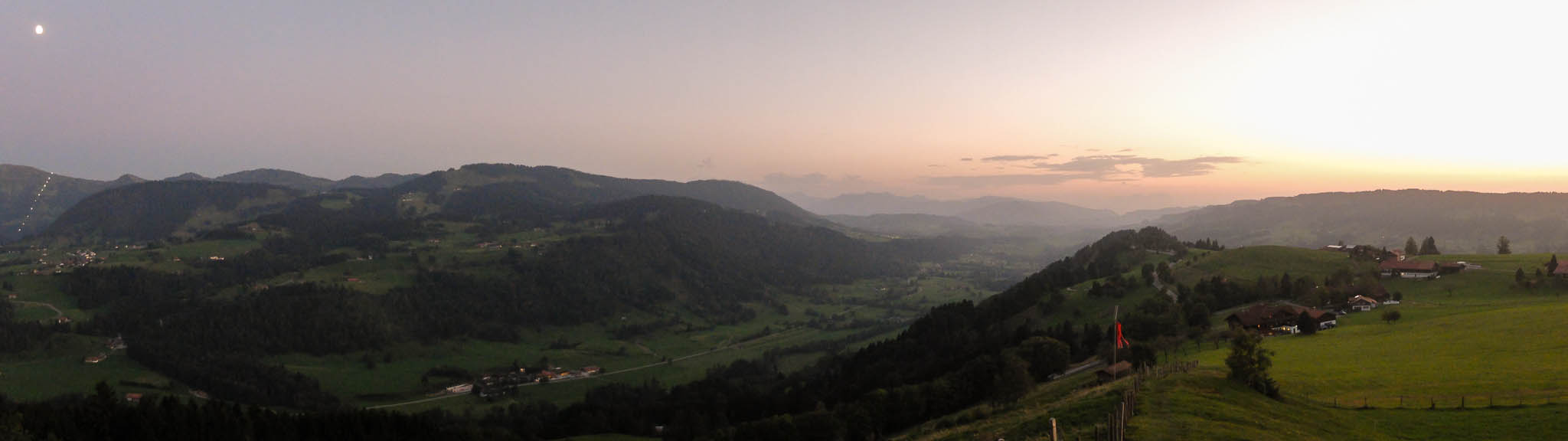 Um 19.00 Uhr waren wir wieder zu Hause. Ich stellte aber nur meinen Rucksack ab und brach dann zu einer weiteren Barfußrunde auf den Kapf auf. Um 20.00 Uhr konnte ich dieses Panorama genießen: