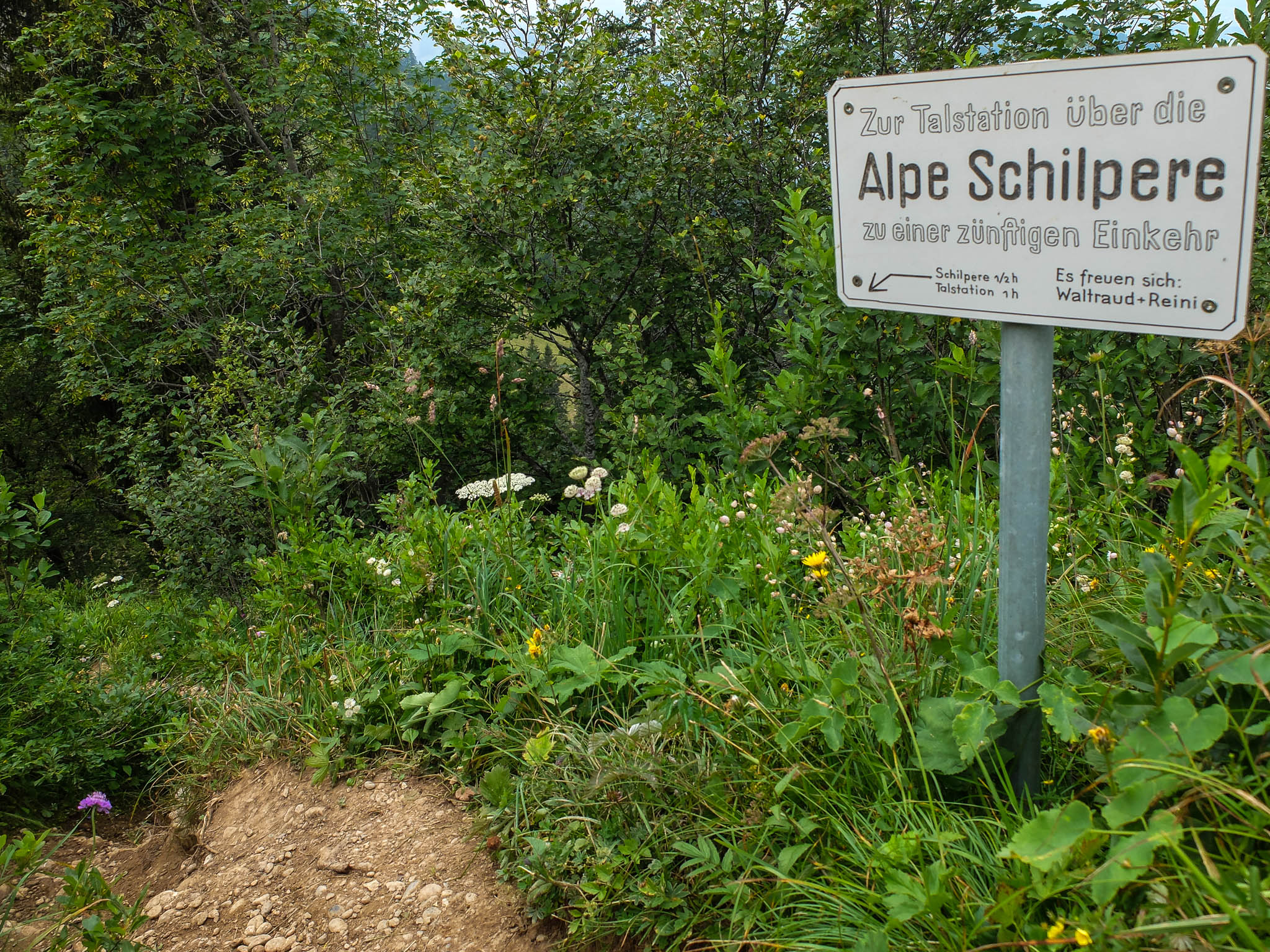 Weiter unten im Tal waren die meisten Pflanzen dieser Art verblüht, die Blätter halb vertrocknet und daher nicht mehr genießbar. Unsere heutige Tour führte in direkter Linie auf einem schmalen Pfad von der Talstation der Hochgratbahn über die Seele-Alpe auf den Seelekopf. Der Weg war auf offiziellen Karten nicht verzeichnet. Aber bei OpenStreetMap: