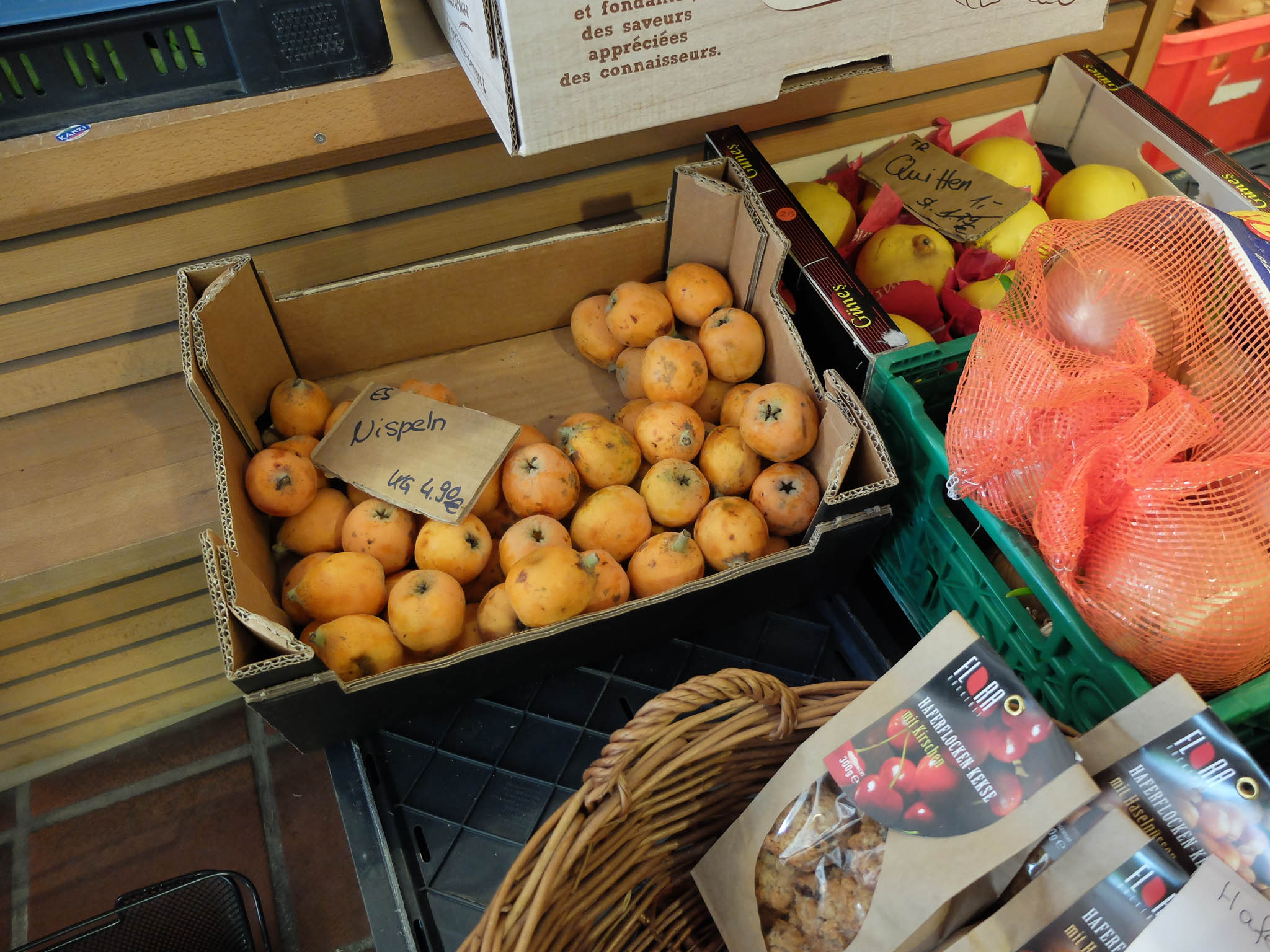 Heute gab es eine Premiere der besonderen Art: Wir drehten unsere erste Einkaufsrunde durch Oberstaufen. Mein Eindruck: Alles bestens, alle Läden des täglichen Bedarfs waren bequem zu Fuß von unserer zukünftigen Wohnung aus zu erreichen. Eine Entdeckung, über die ich mich besonders freute, war ein Feinkostladen mit frischem Obst und Gemüse, der von einer jungen, einheimischen Frau geführt wurde. Zu meiner großen Überraschung und Freude hatte sie sogar Japanische Mispeln im Angebot: