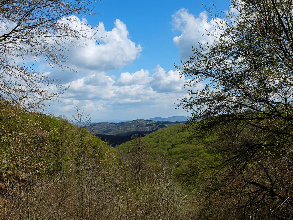 Es war eine wunderschöne Tour durch in hellem Grün leuchtende Laub- und dunkle Nadelwälder, entlang von Bächen und mit herrlichen Ausblicken über die hügelige Landschaft des Hochwalds. Impressionen von der Strecke: