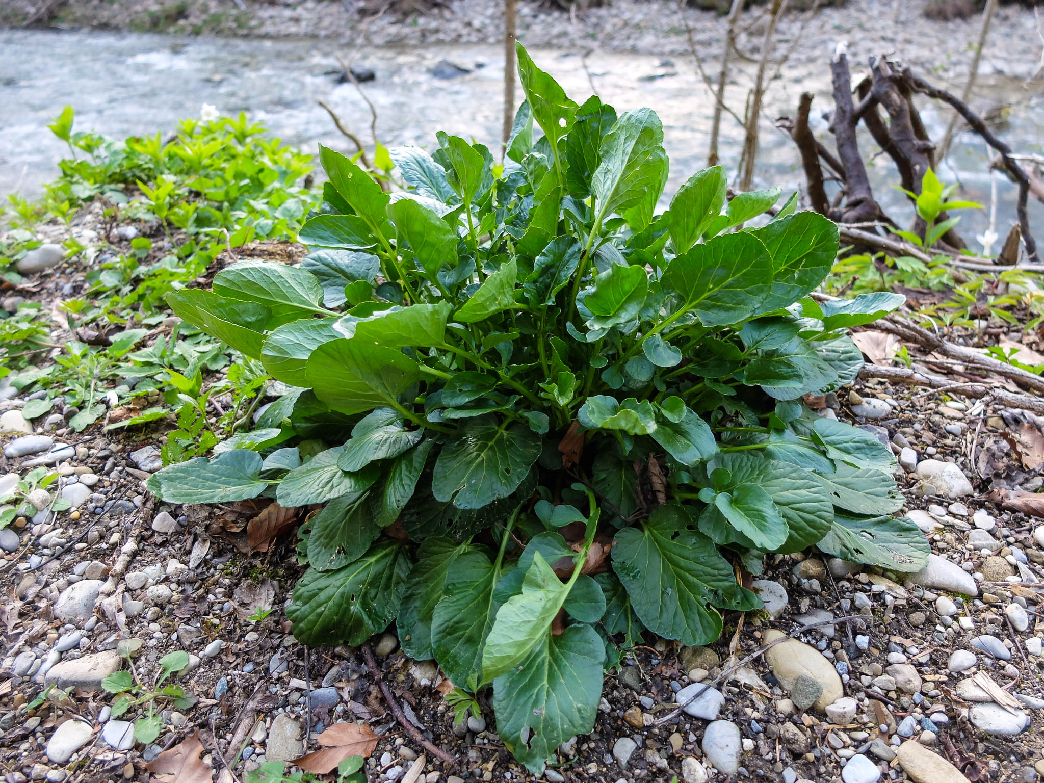 Sie waren mir allerdings zu bitter, ebenso wie die Blätter vom Wiesenkerbel. Die Blätter dieser mir unbekannten Pflanze (ich nahm an, dass sie zu zu den Kreuzblütengewächsen gehörte) waren dagegen zu scharf: