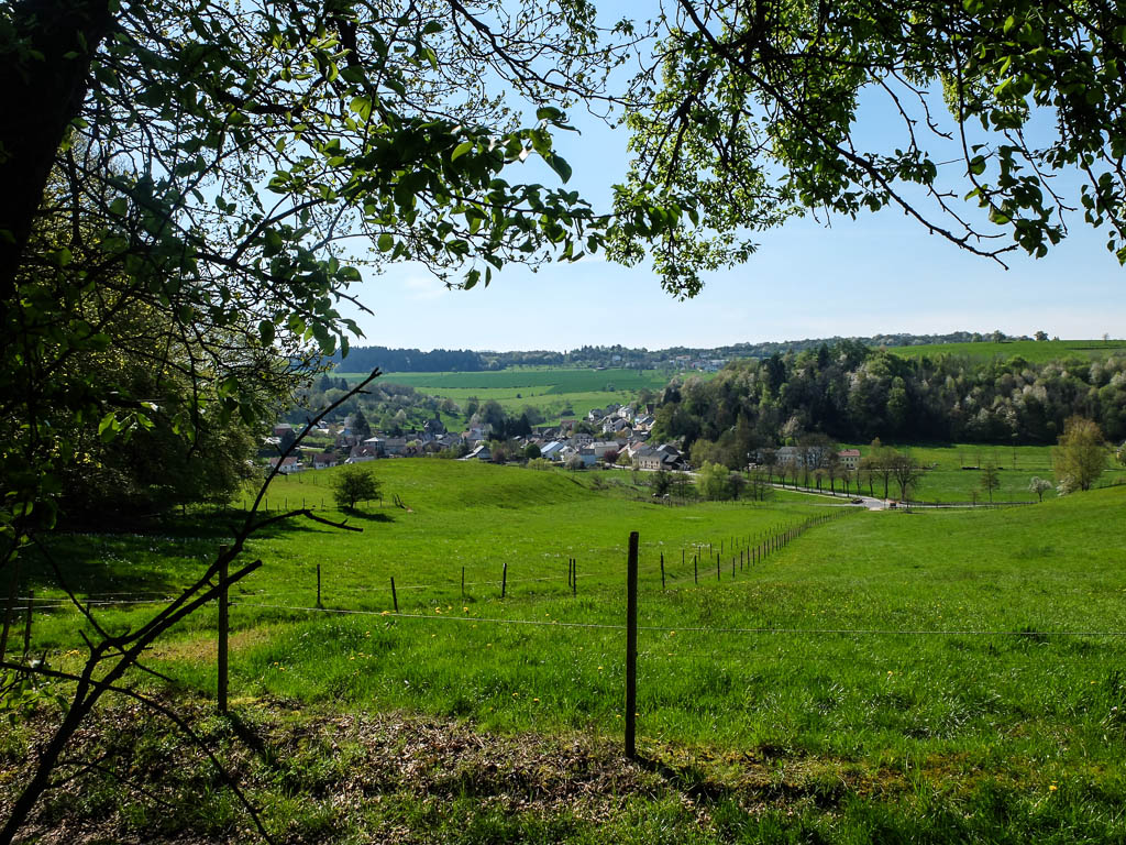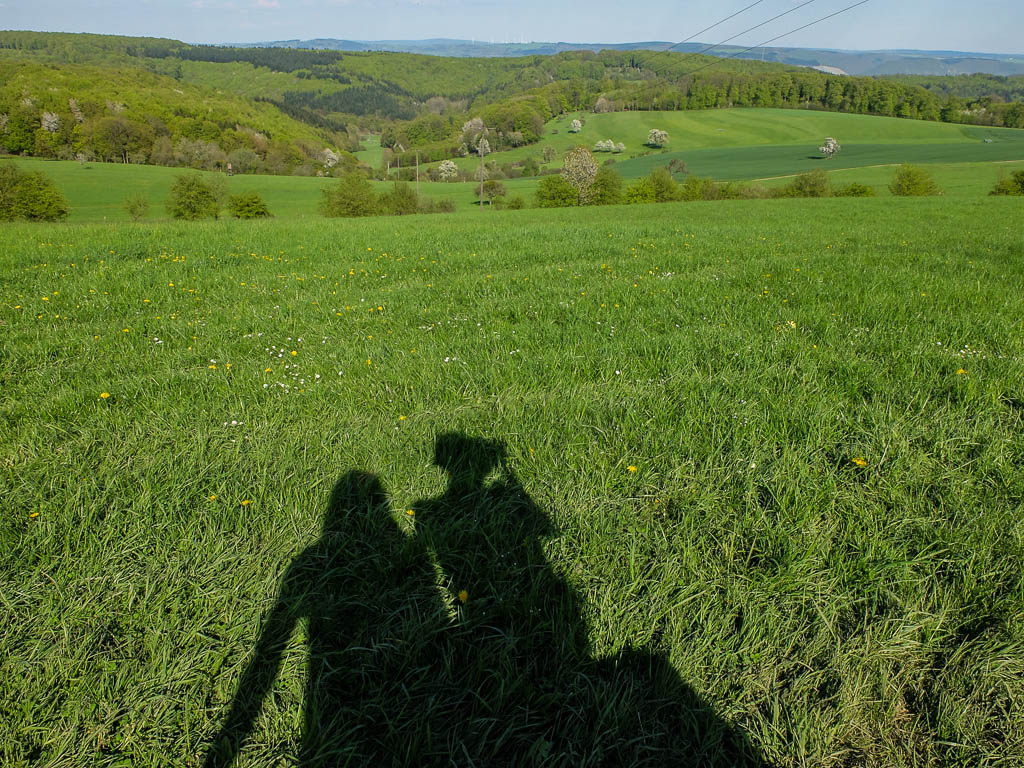 Um 14 Uhr fuhr ich zusammen mit Guido in die Stadt und besorgte mir unter anderem Nachschub an Bananen. Sie schmeckten mir im Moment fast genauso gut wie Kokosnüsse. Anschließend fuhren wir weiter nach Mannebach, einer Ortsgemeinde im Landkreis Trier-Saarburg in Rheinland-Pfalz. Von einem Parplatz in der Ortsmitte starteten wir zu einer 12 Kilometer langen Wanderung, der Traumschleife „Mannebach 111“ – warum „111“, blieb uns ein Rätsel: