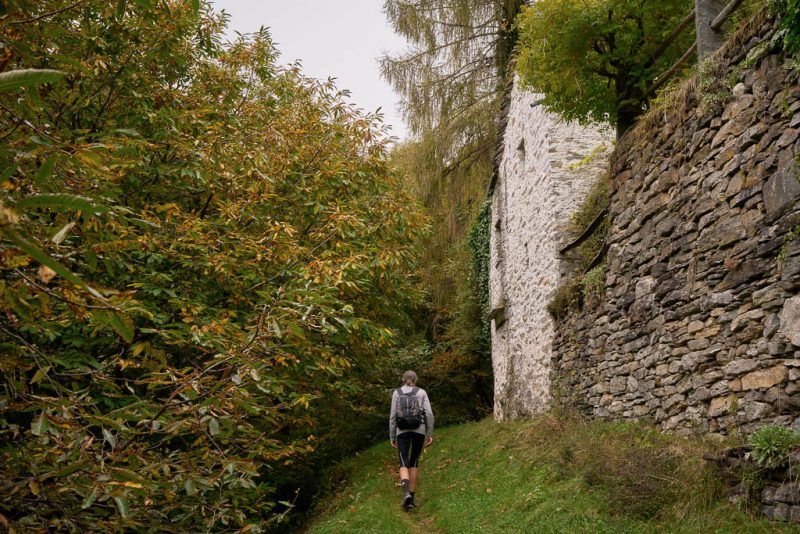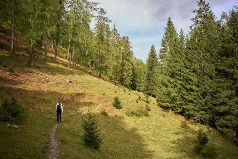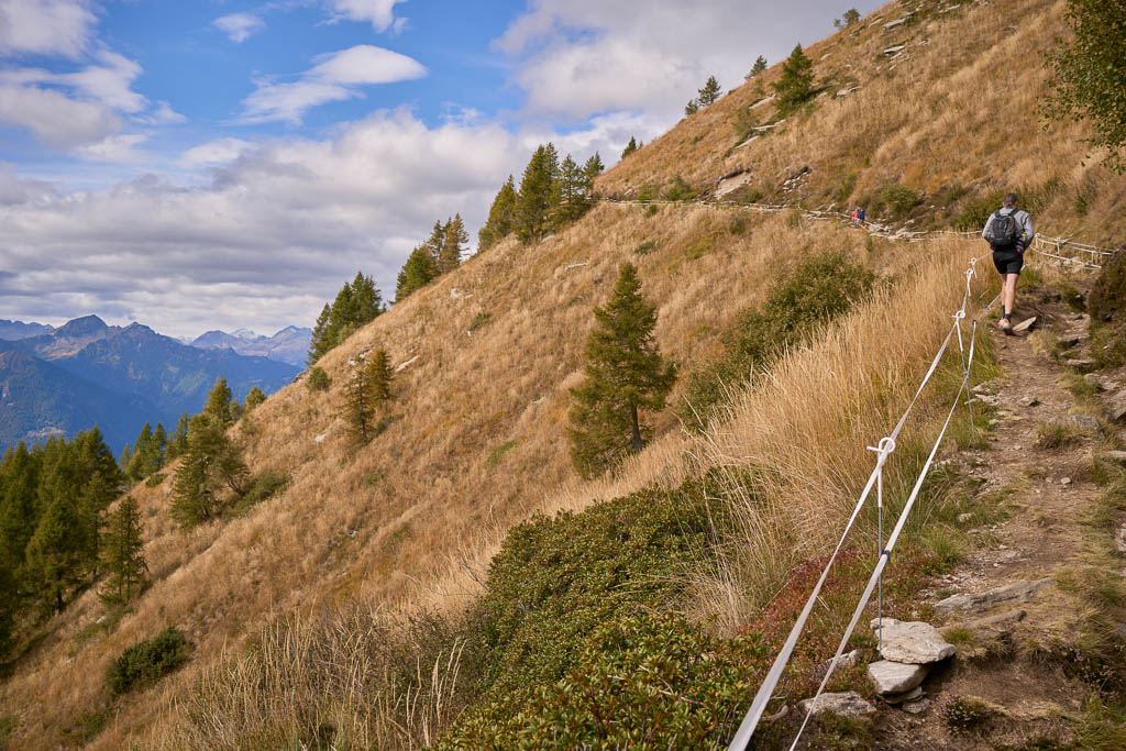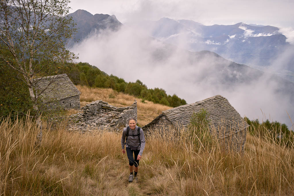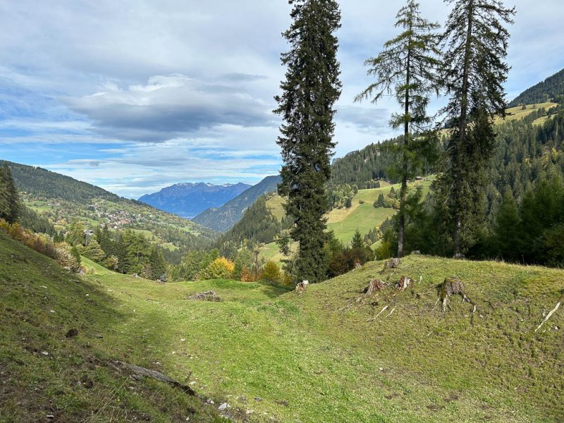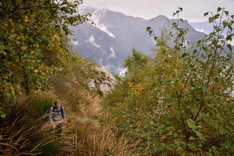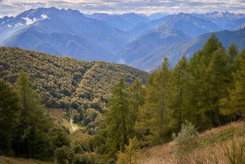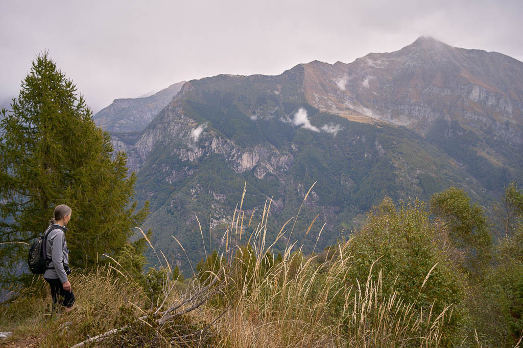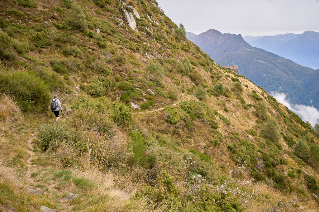 Von der Alpe aus geht es steil bergab nach Mota di Sopra: