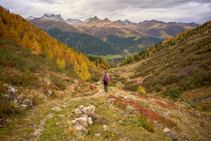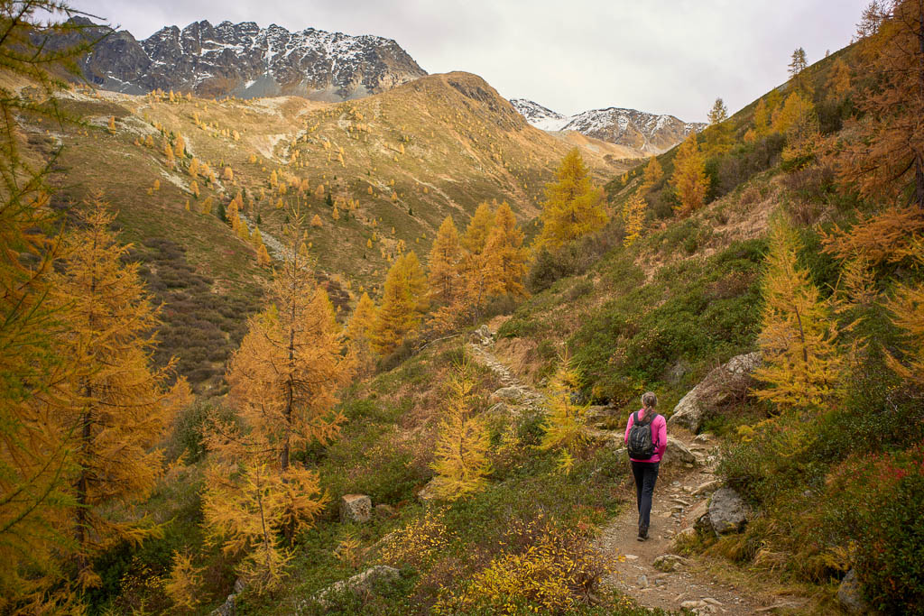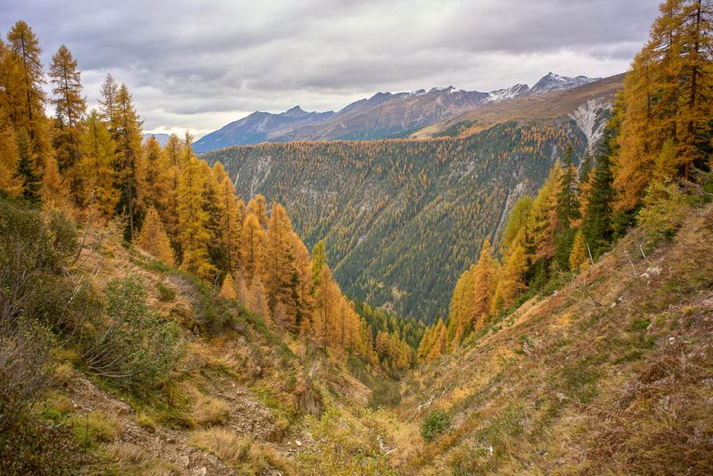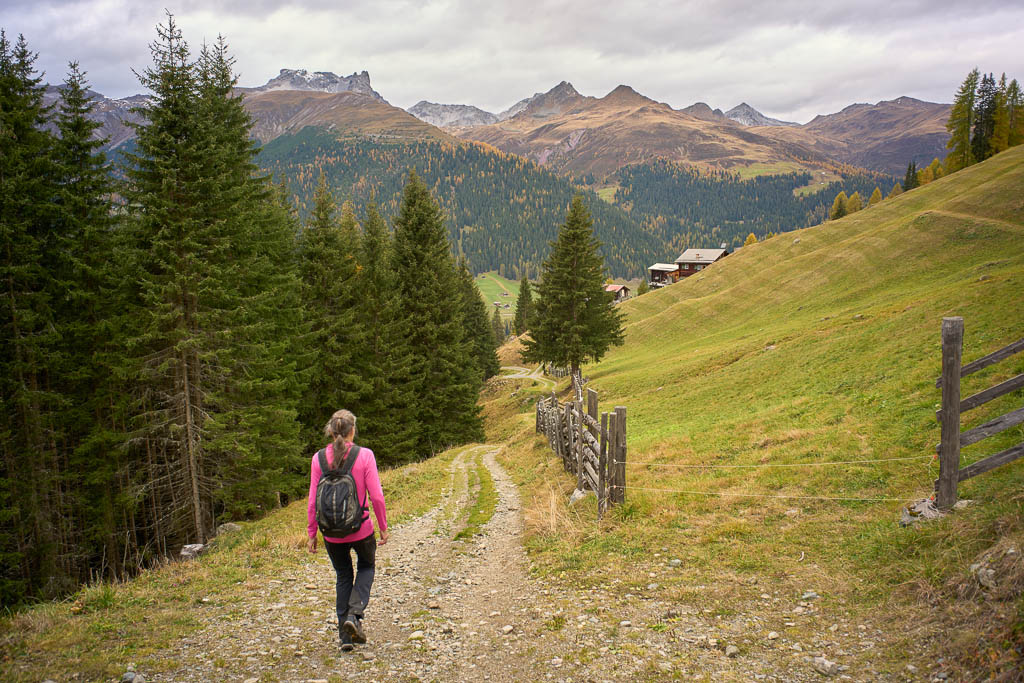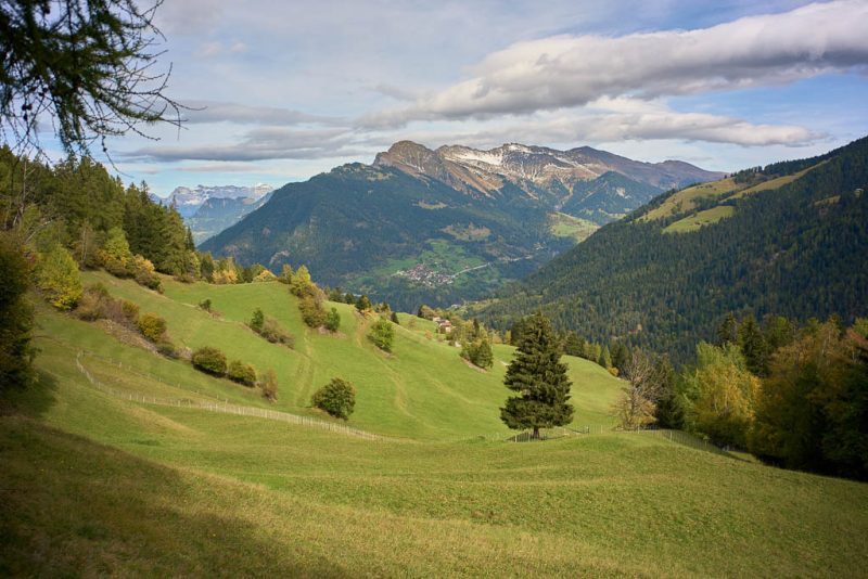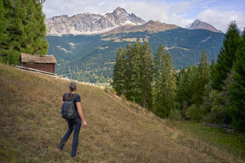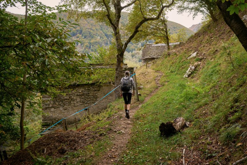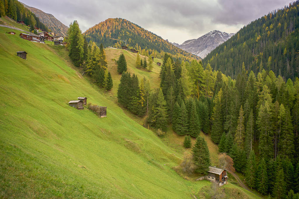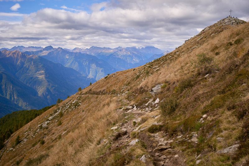 Von der Alpe aus geht es steil bergab nach Mota di Sopra: