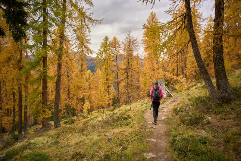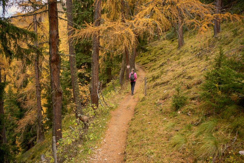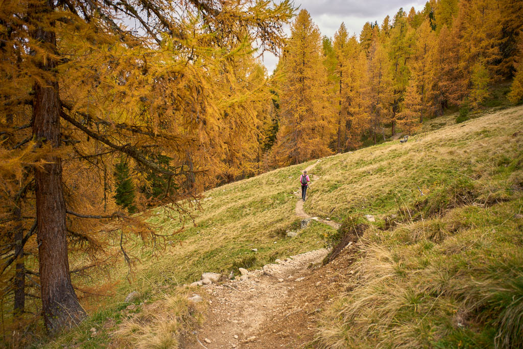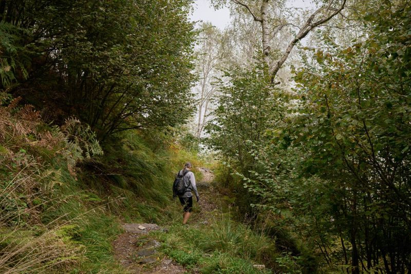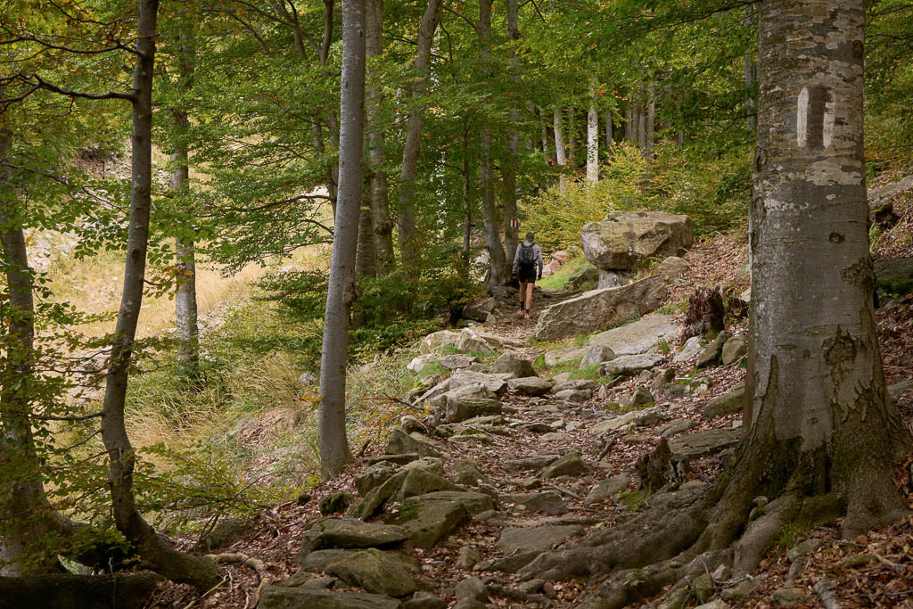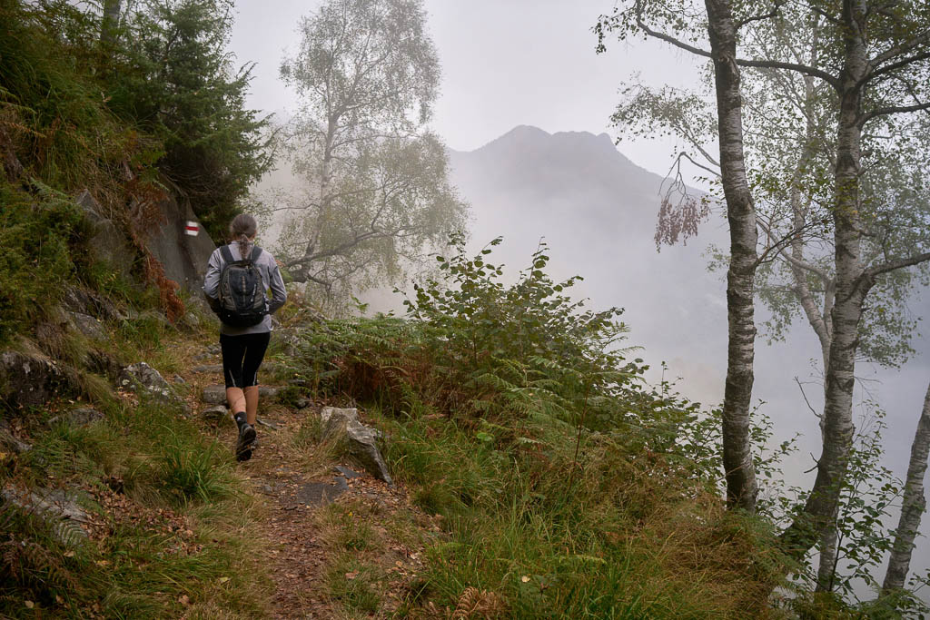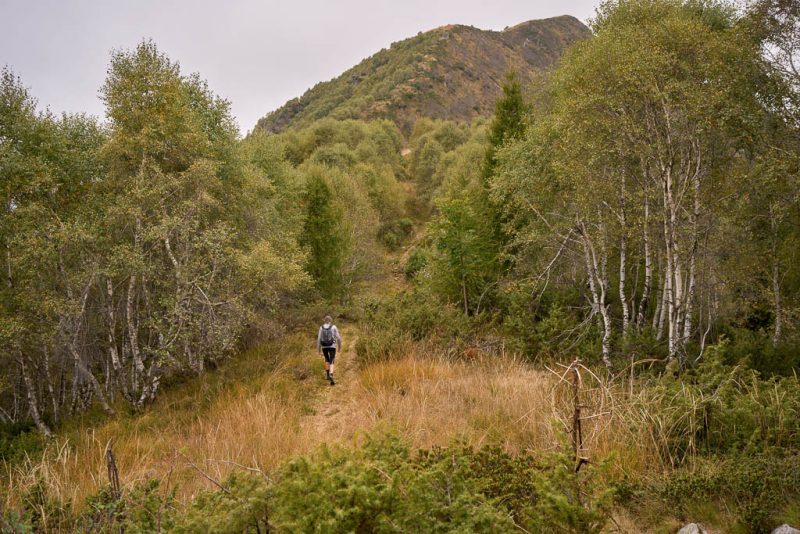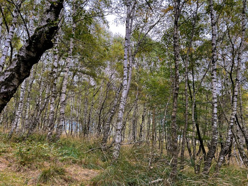 Von Porchesio aus führt der Weg durch einen urigen Birkenwald: