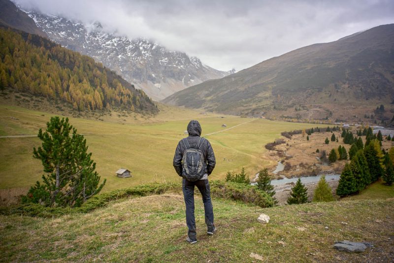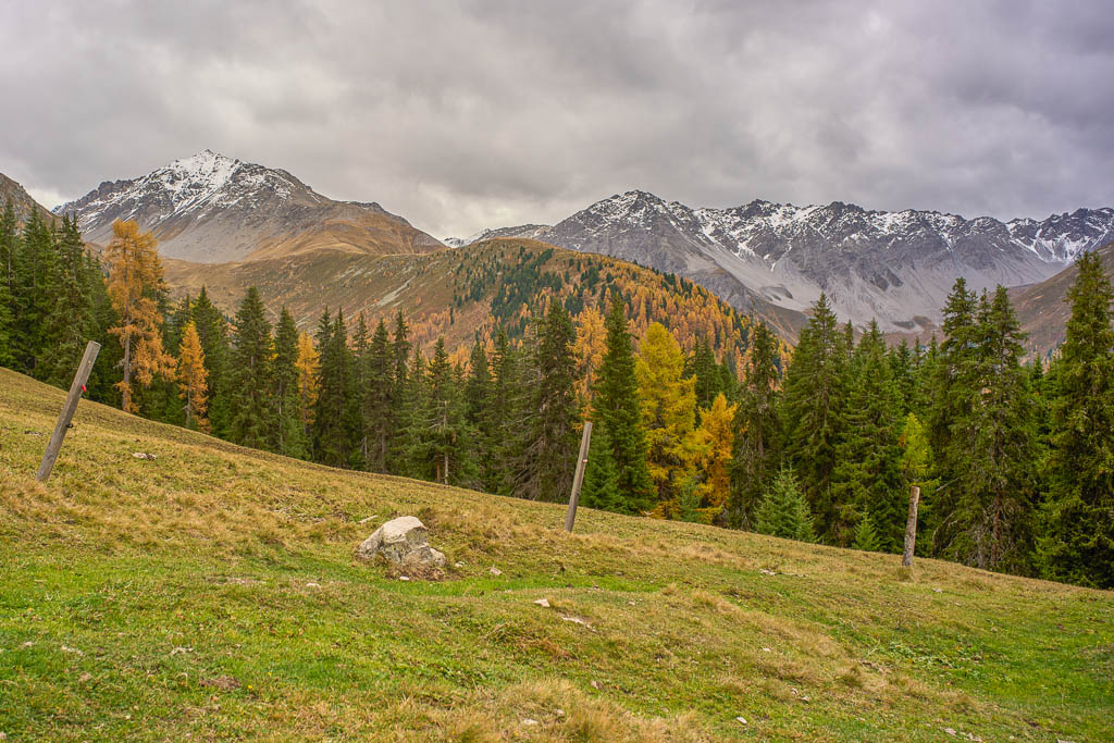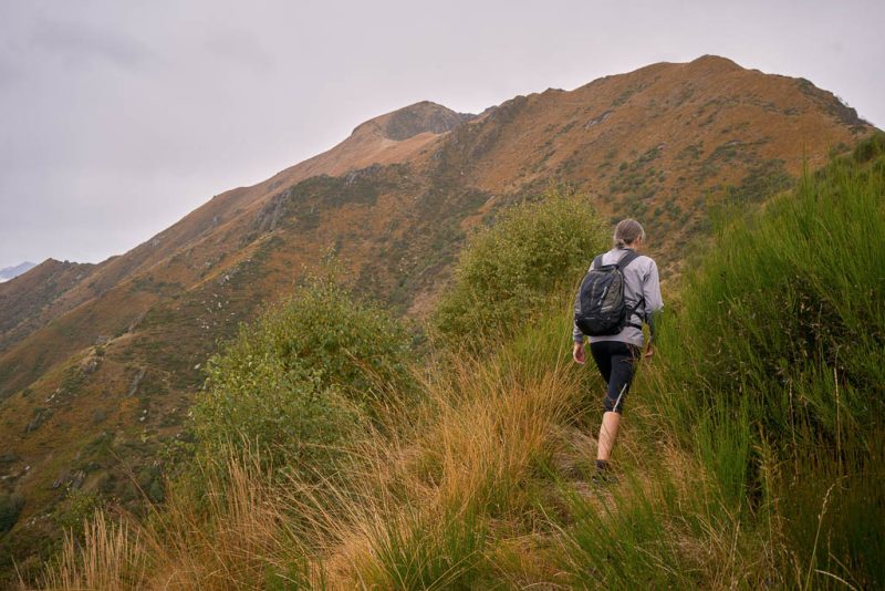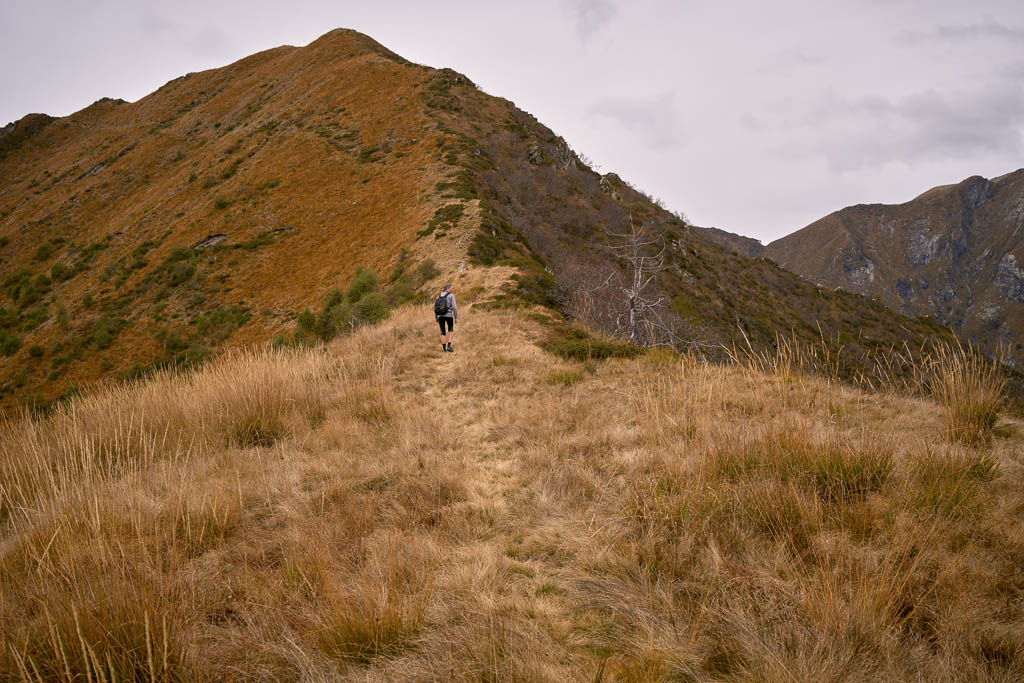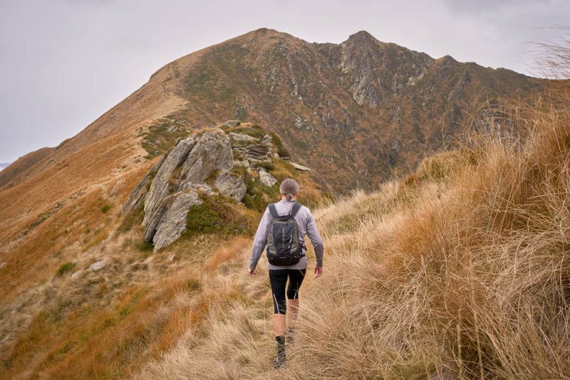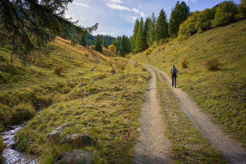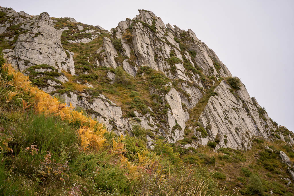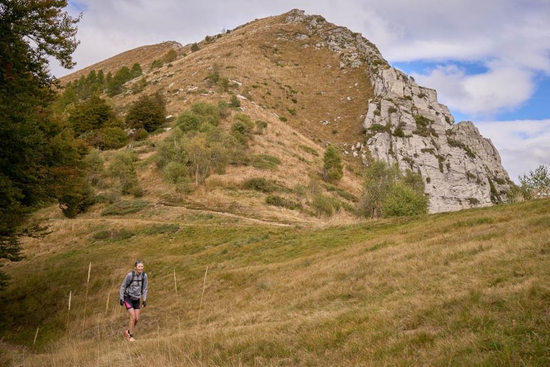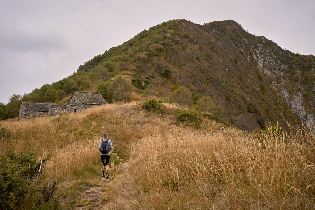 Bei den Hütten von Redrisc, die auf 1530 Metern liegen, verlassen wir den offiziellen Wanderweg, der unterhalb des Ostgrats entlangführt und laufen auf Wegspuren hinauf zum Grat: