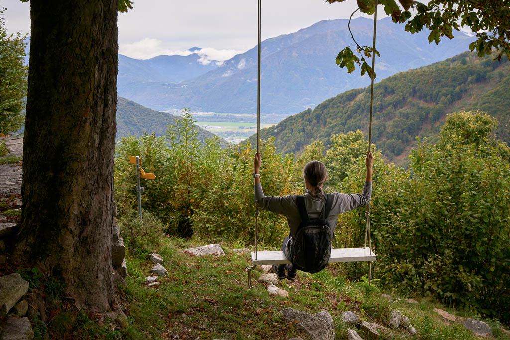 Sie ist allerdings sehr breit und unhandlich. Viel Schwung hole ich daher lieber nicht, denn ich habe Bedenken, über die Bäume hinweg wieder hinunter nach Mergoscia zu fliegen! Weiter geht es:
