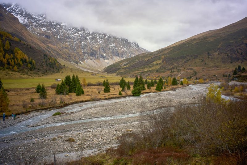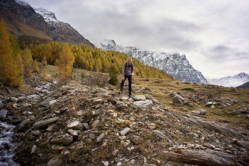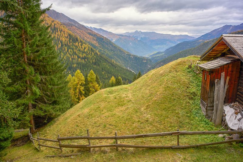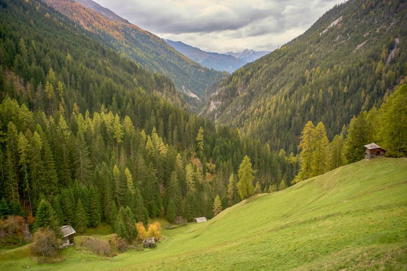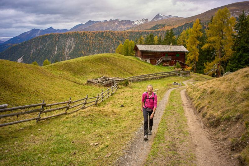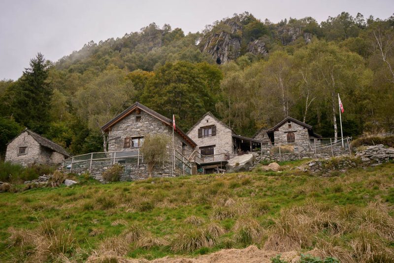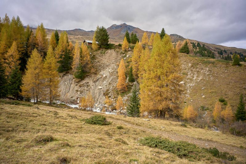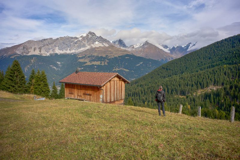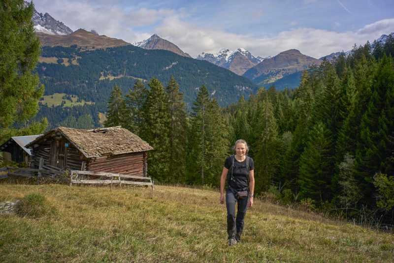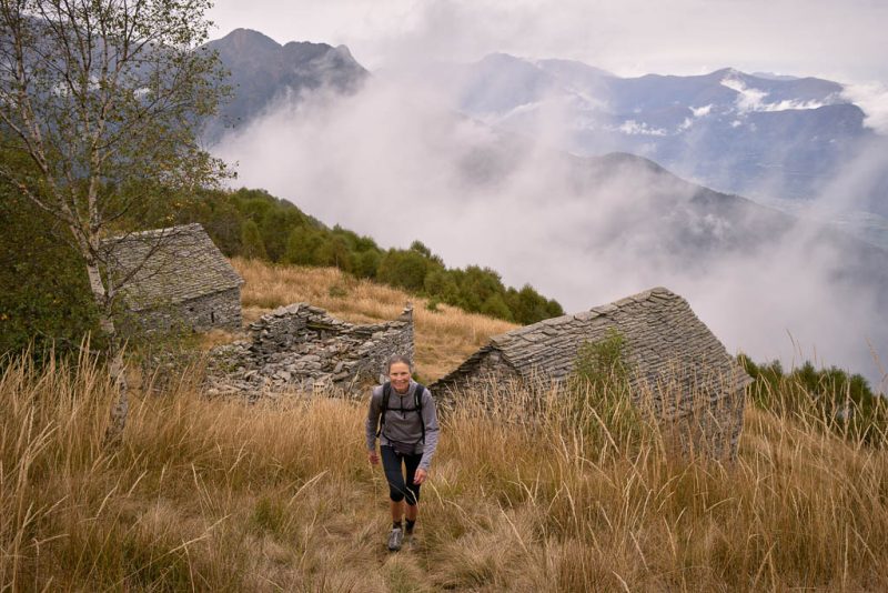 Am Wegesrand liegen mal mehr, mal weniger zerfallene Alphütten: