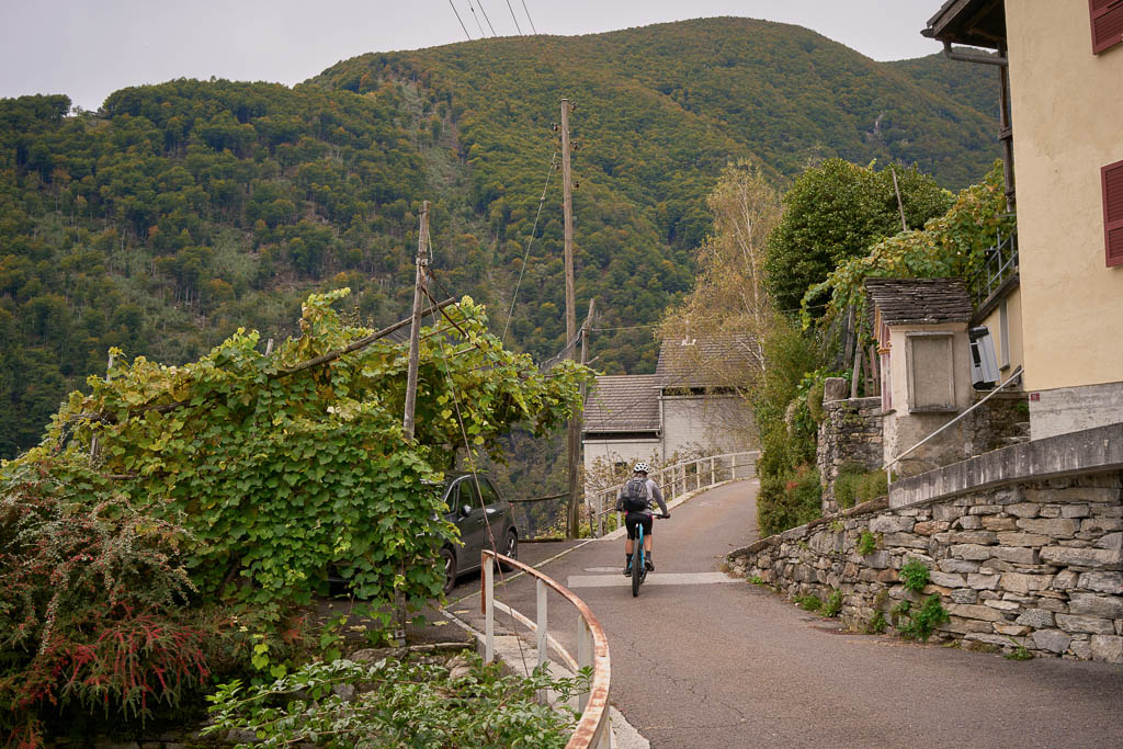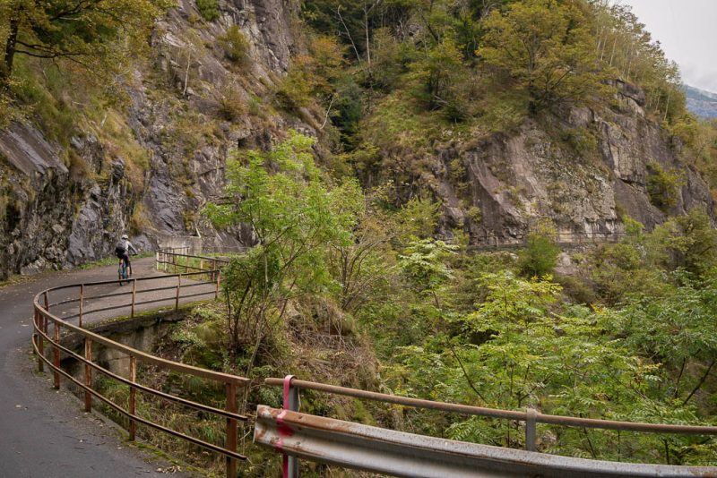 Die Straße führt unterhalb von Mergoscia durch einen Tunnel, den wir aber Gott sei Dank nicht benutzen müssen: Wir radeln auf der alten, für den Verkehr gesperrten Straße entlang: