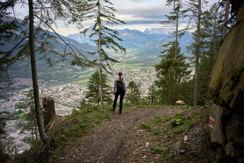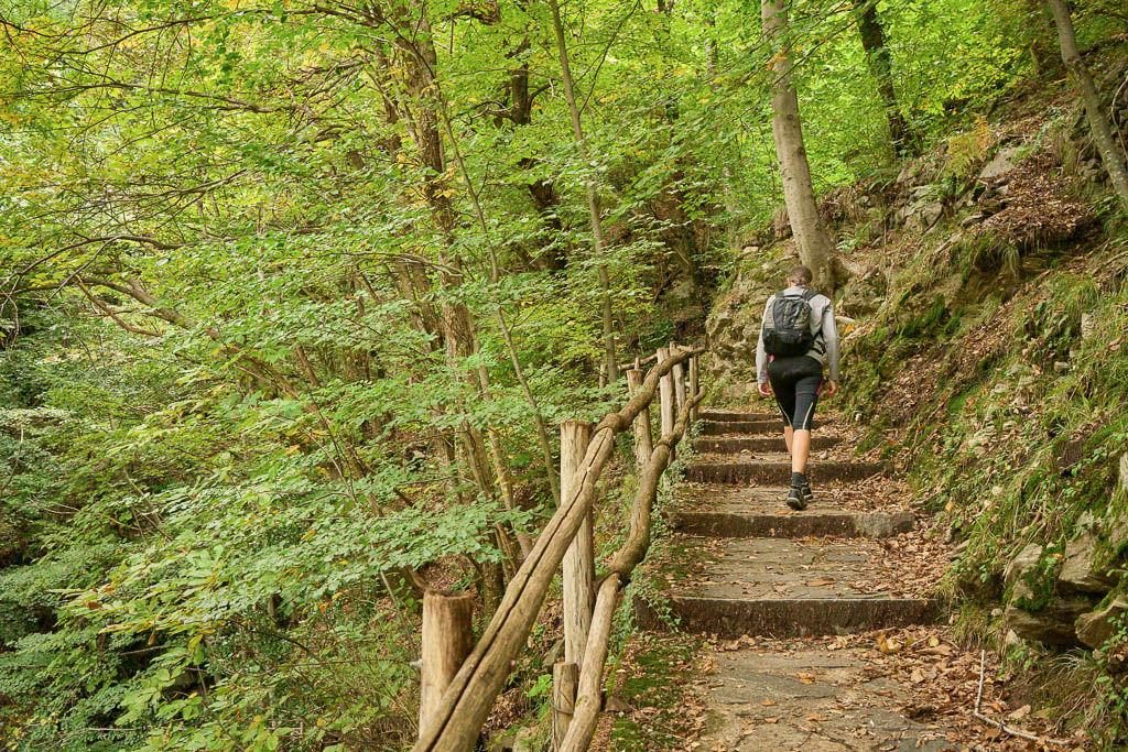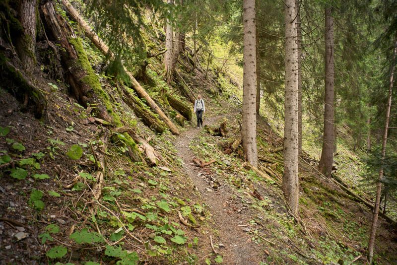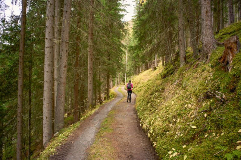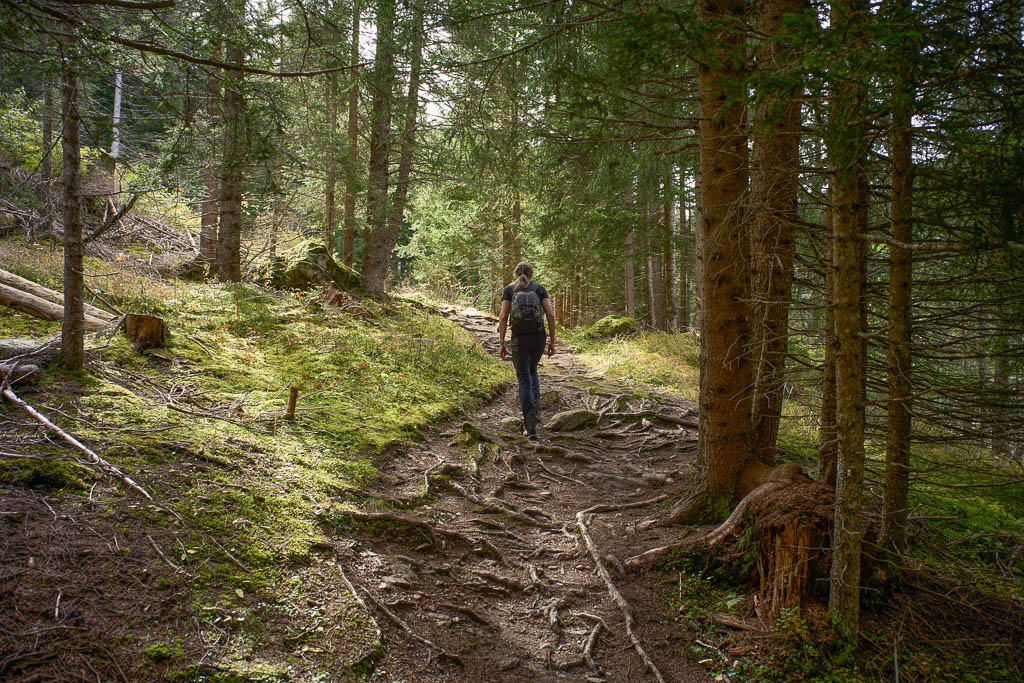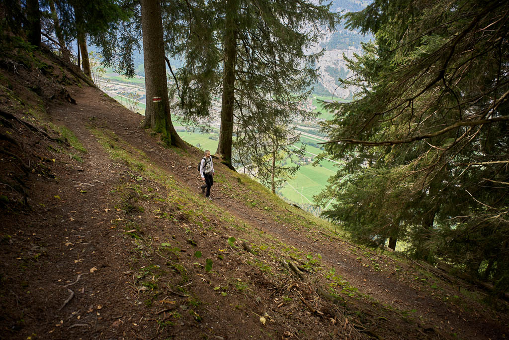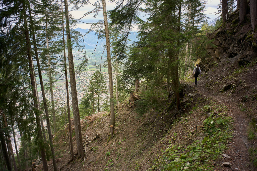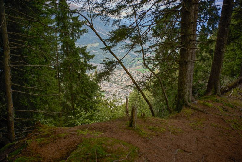 Ab hier geht es über einen Waldweg weiter nach unten. An einer Stelle verpassen wir eine Abzweigung und so kommen wir in den Genuss einer kleinen Extrarunde durch den Wald: