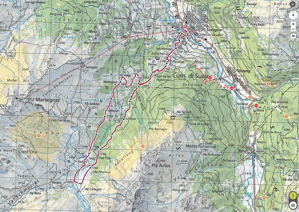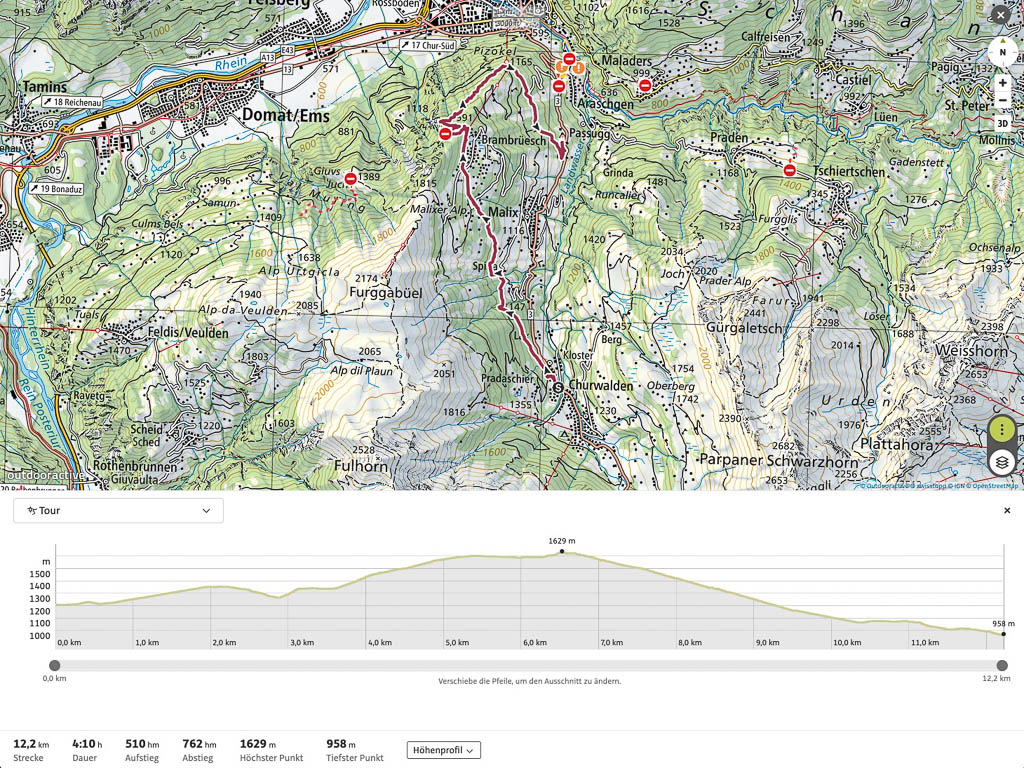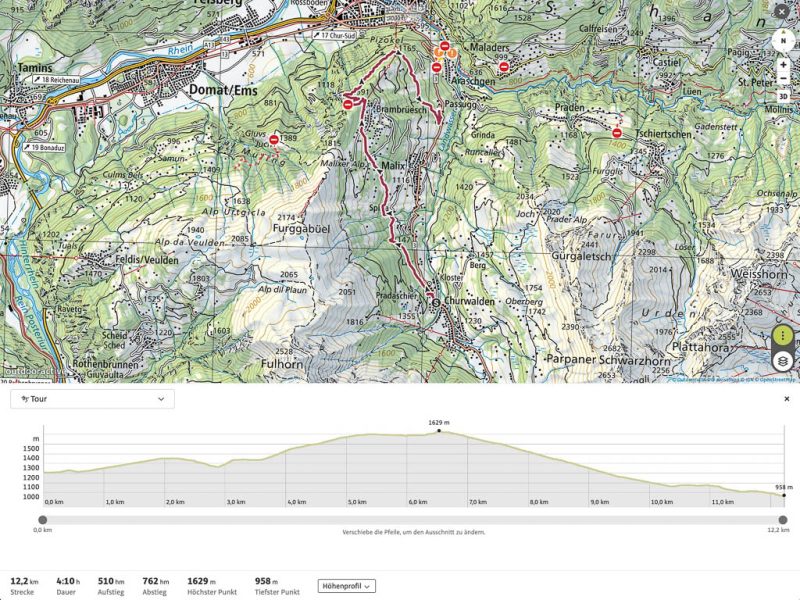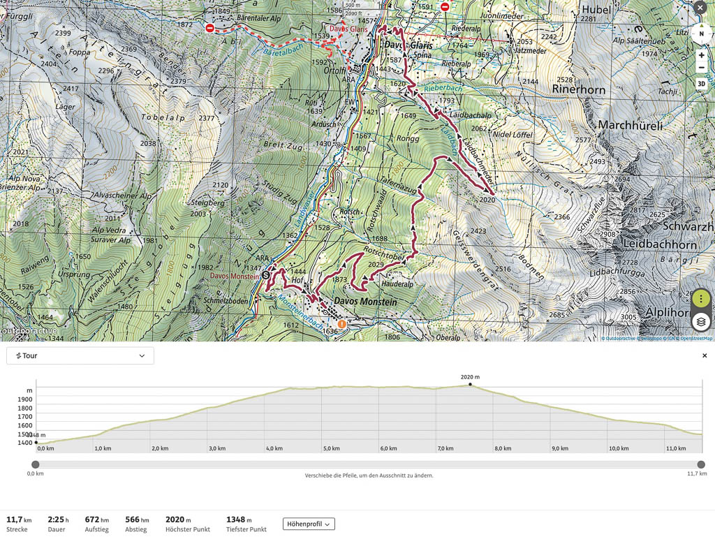 Die Daten der Tour: Distanz: 27,6 Kilometer; Höhendifferenz: 1700 Meter. Eine interaktive Karte ist auf Guidos Seite zu finden: Trek (auf den) Madone.