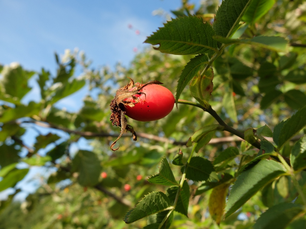 Außer Blüten fand und aß ich erstmals reife Berg-Hagebutten. Sie schmeckten nicht ganz so armomatisch wie die „normalen“. Dieser Pilz stand ebenfalls am Wegesrand: