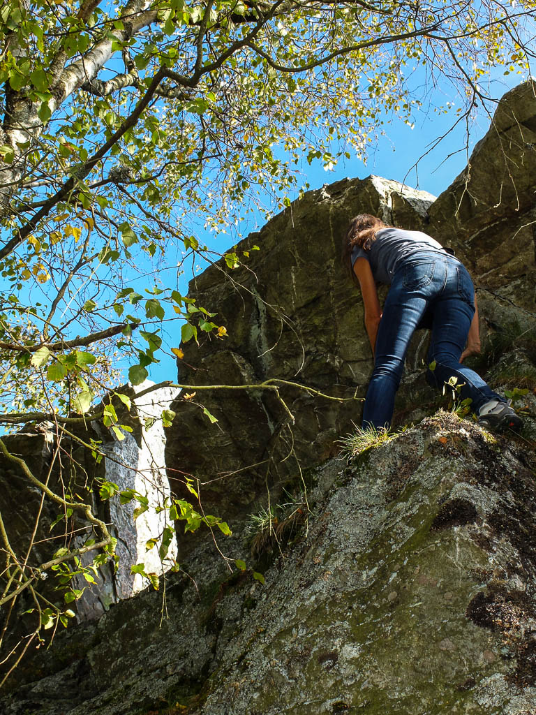 Mit dem Verschwinden der Sonne wurde es plötzlich so kalt, dass ich nicht nur Pullover, Jacke und lange Hose, sondern auch Handschuhe und Stirnband anzog. Während wir am An- bzw. Umziehen waren, tauchte über dem Gipfel plötzlich ein Drachenflieger auf und rief uns mit einem Lachen „Da glaubt man sich mal unbeobachtet!“ zu, drehte ab und verschwand in Richtung Tal: