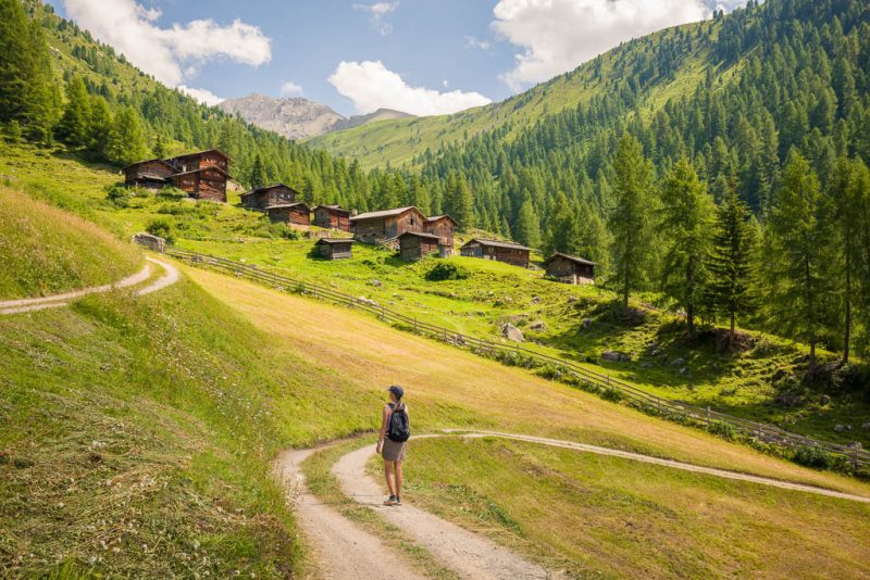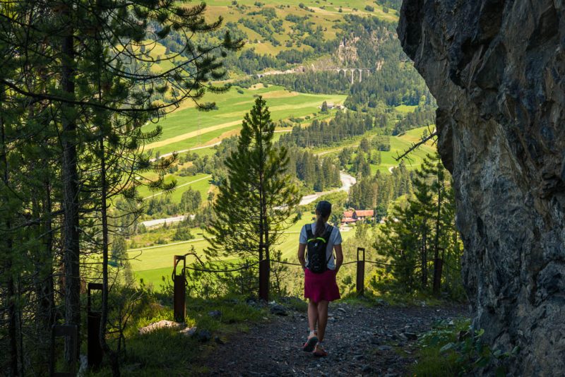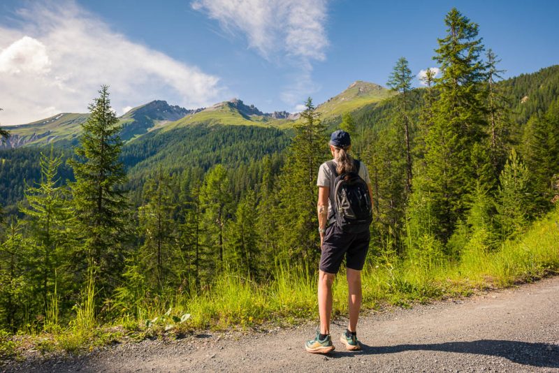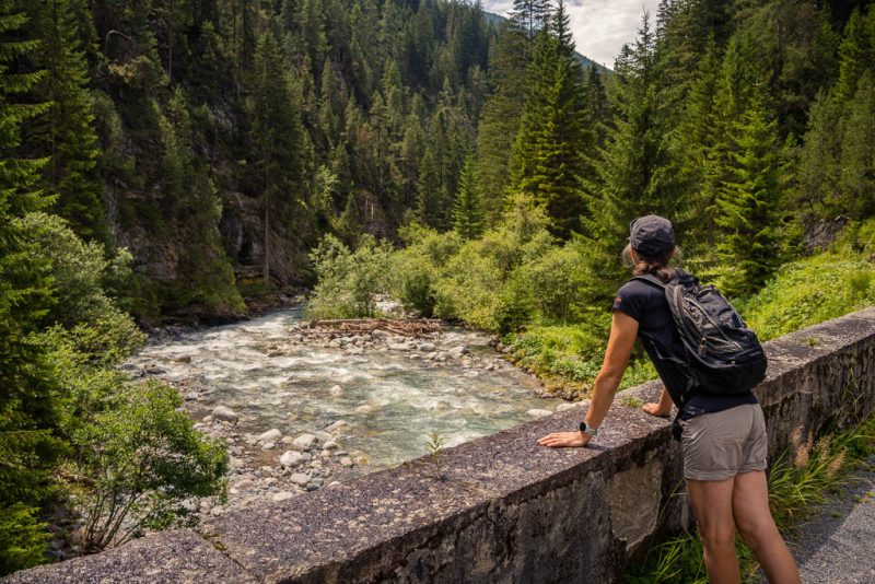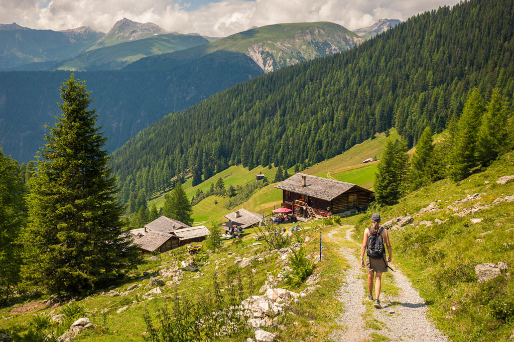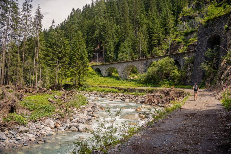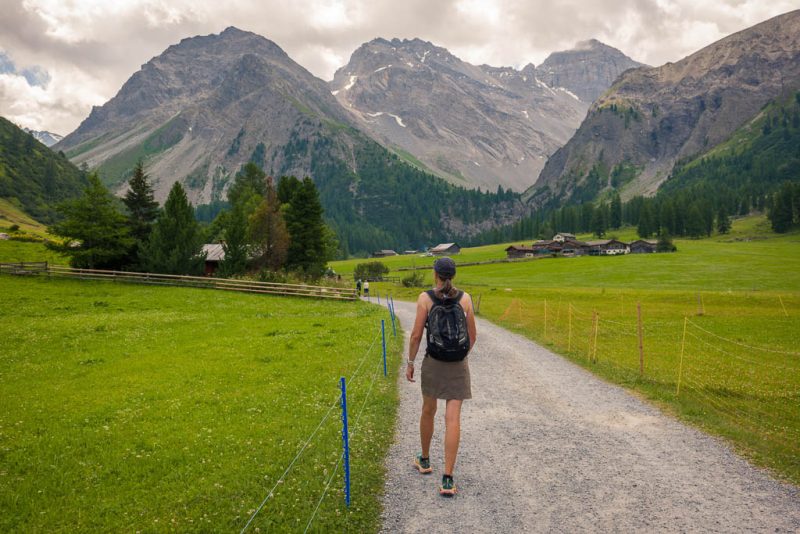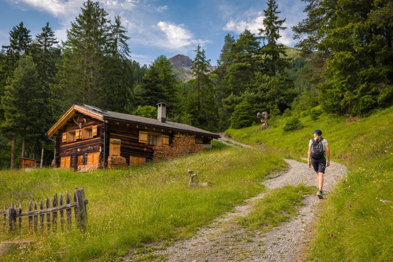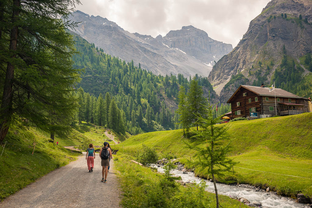 Wir wiederholen heute eine Wanderung, die wir am 30. August 2021 schon einmal gemacht haben: Wir wandern von Sertig Sand aus über die Fanezfurgga nach Monstein. Zu Beginn geht es über einen breiten Spazierweg Richtung Wasserfall: