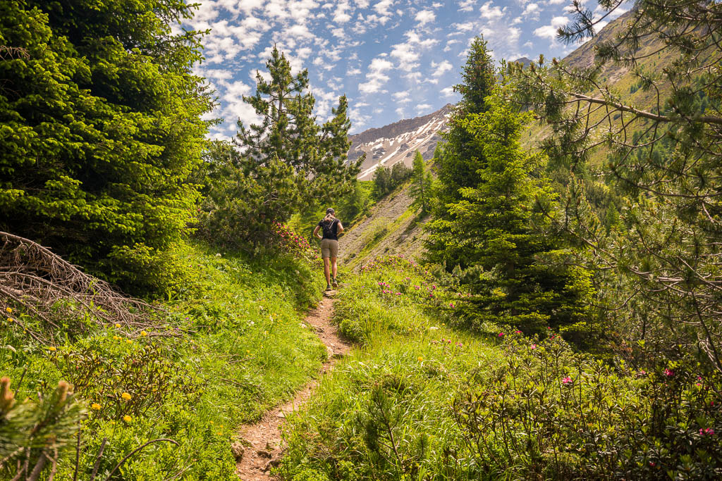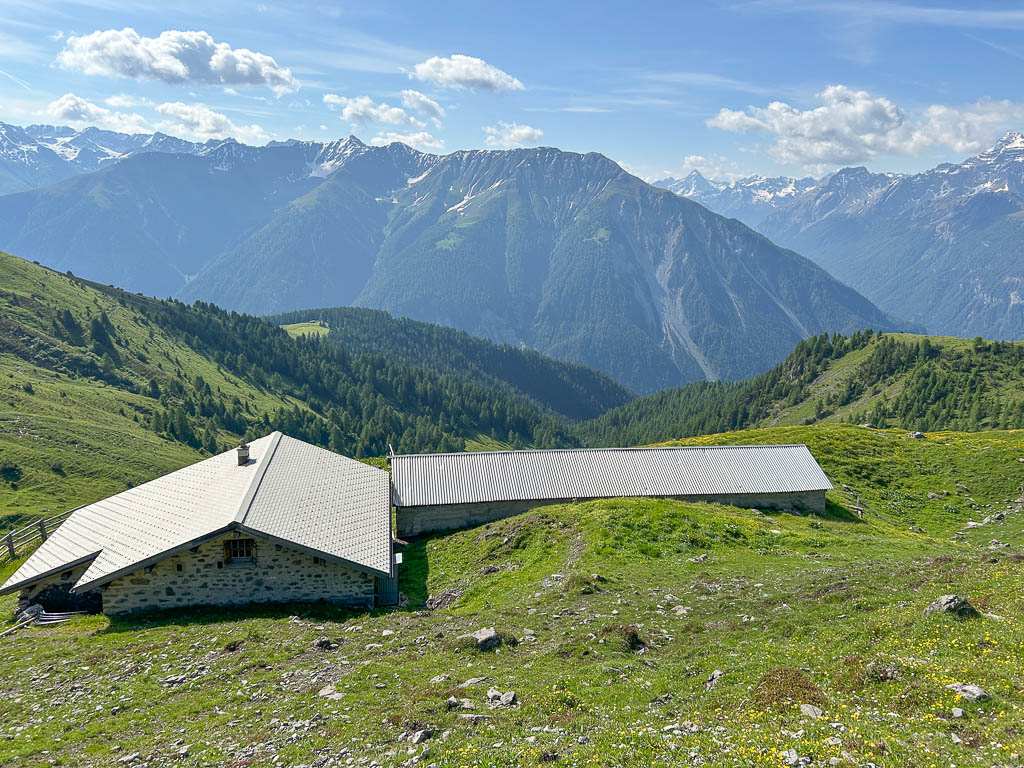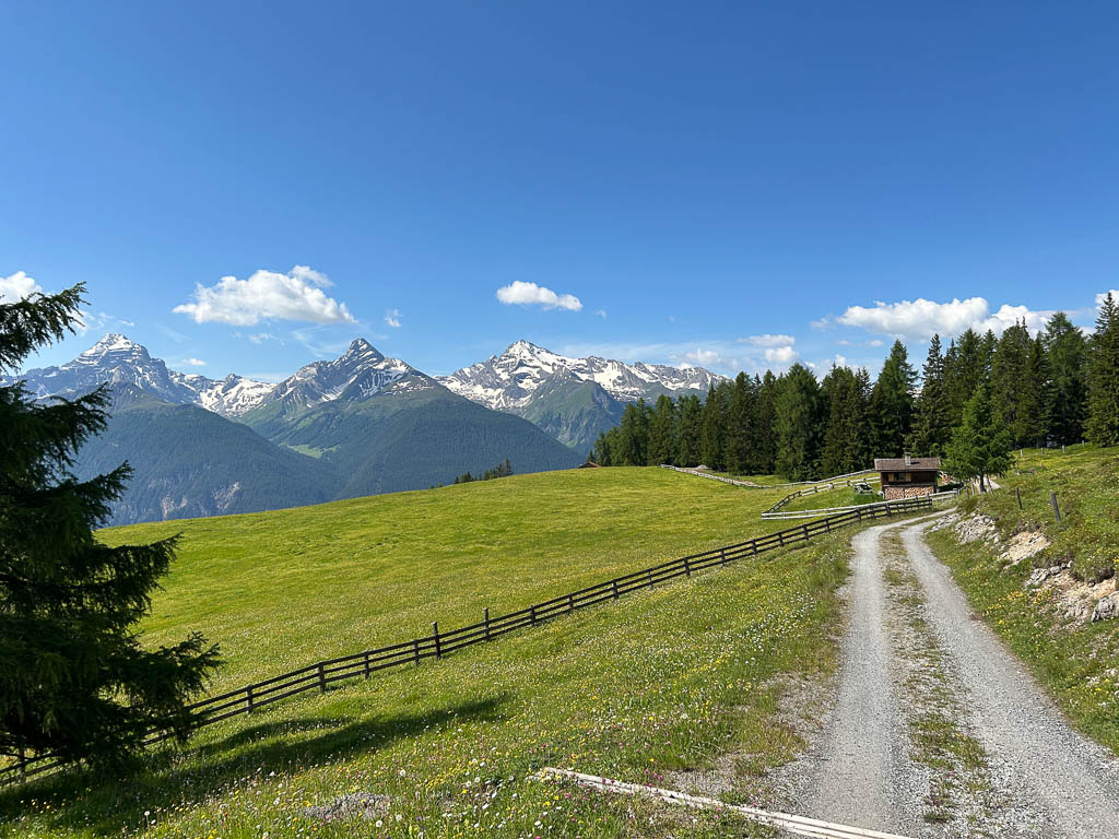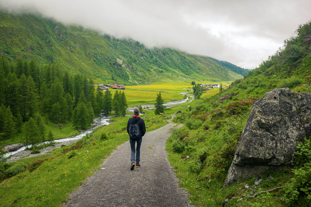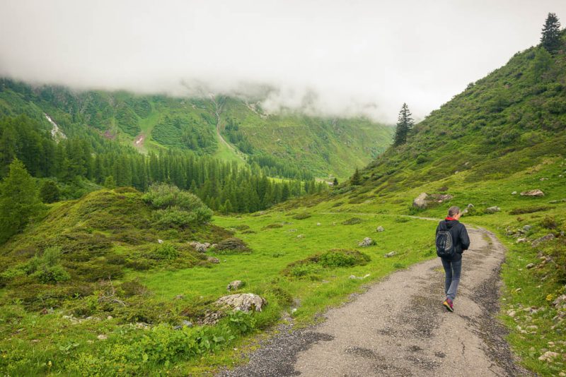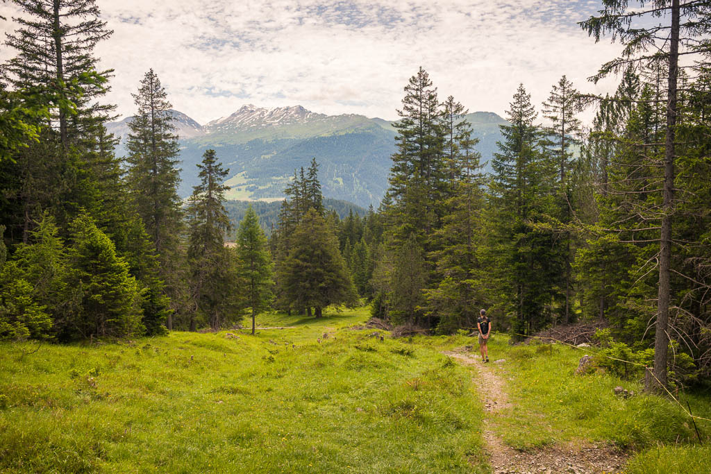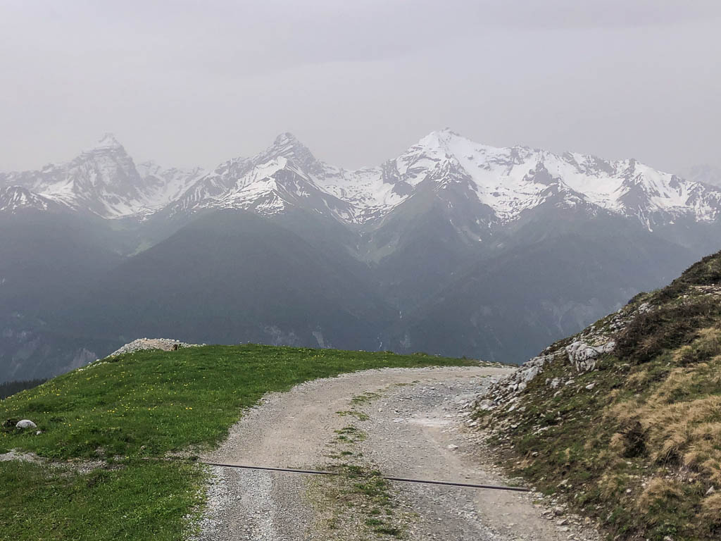 Von der Alp Martüel aus laufe ich über den Fahrweg nach unten und kehre zurück zur Schmittner Alp: