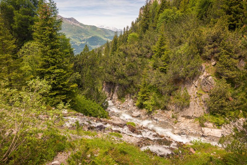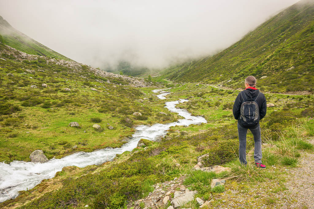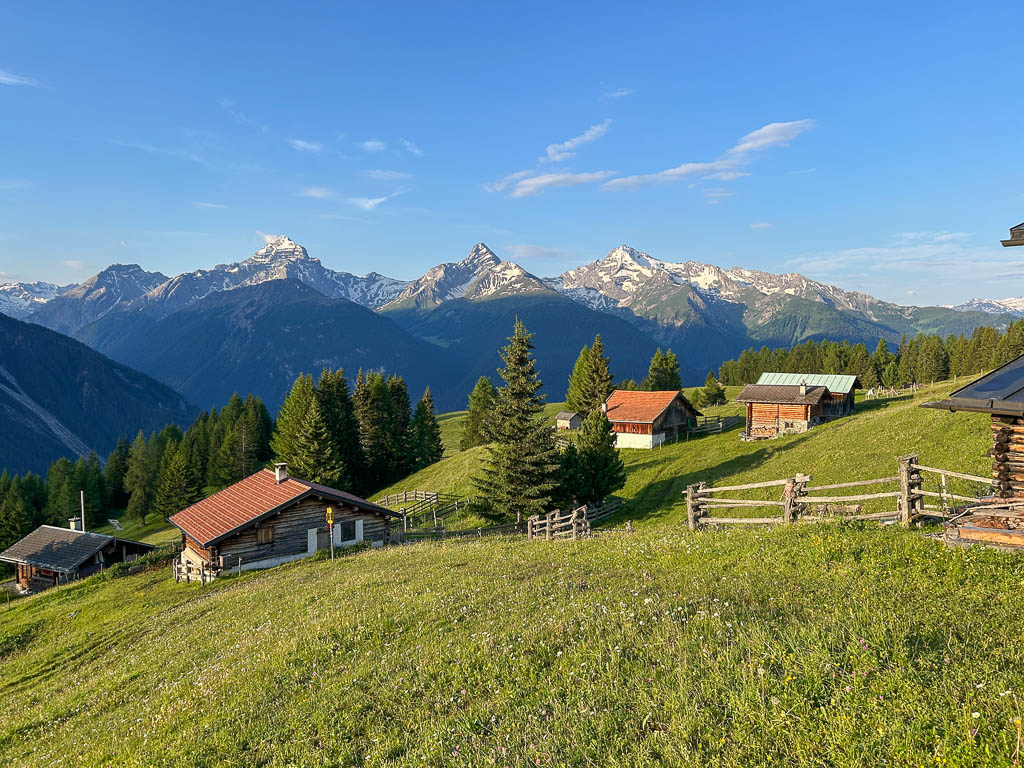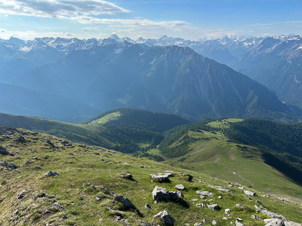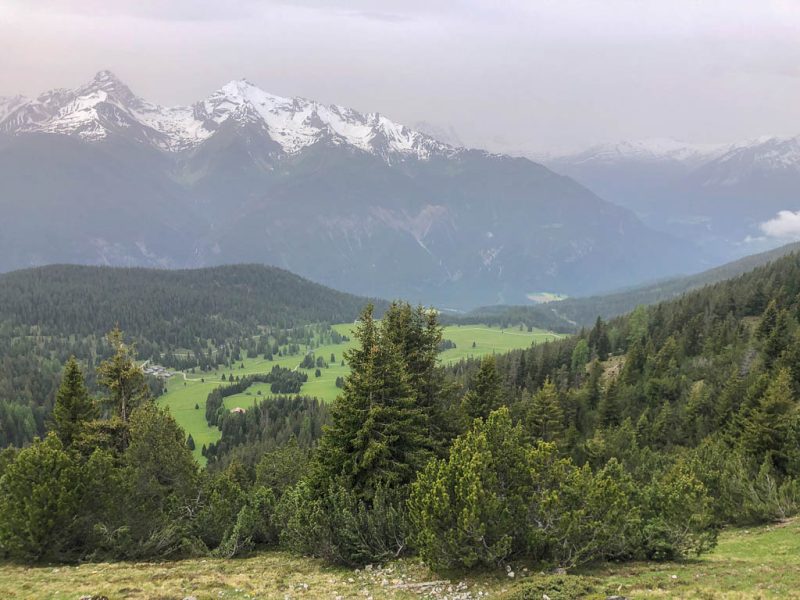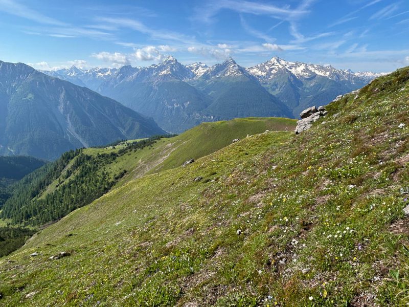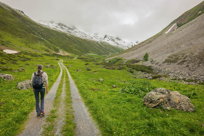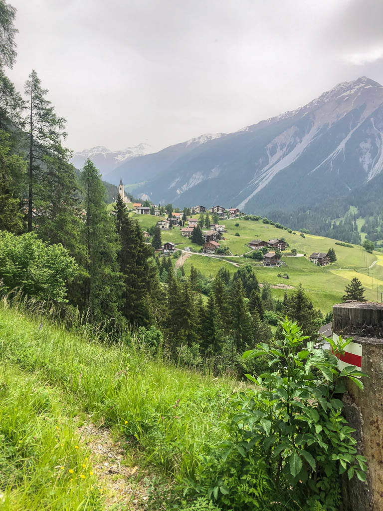 Von der Alp Martüel aus laufe ich über den Fahrweg nach unten und kehre zurück zur Schmittner Alp: