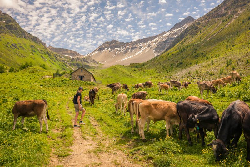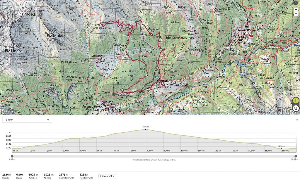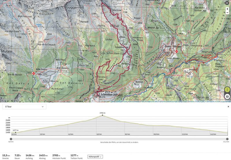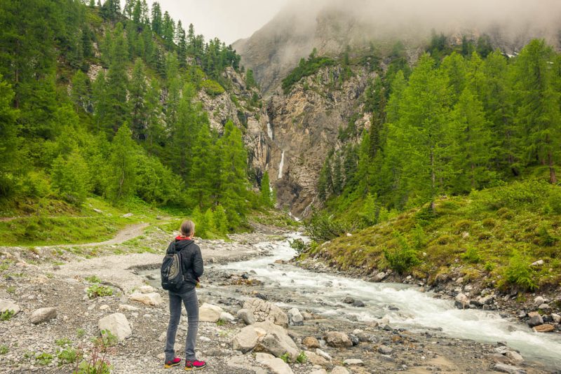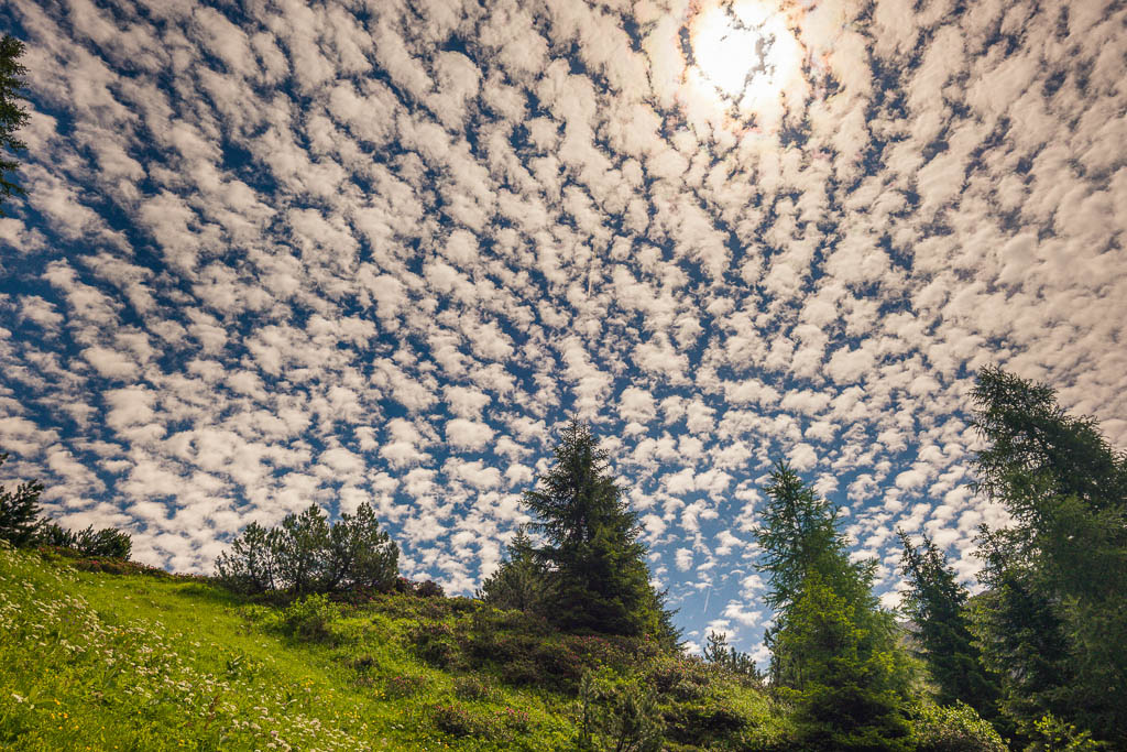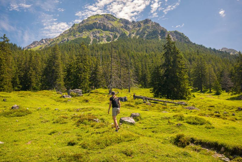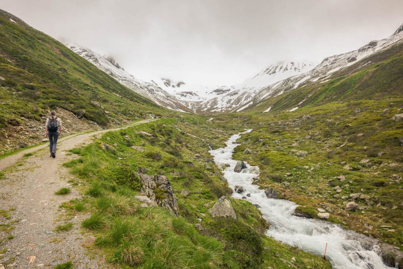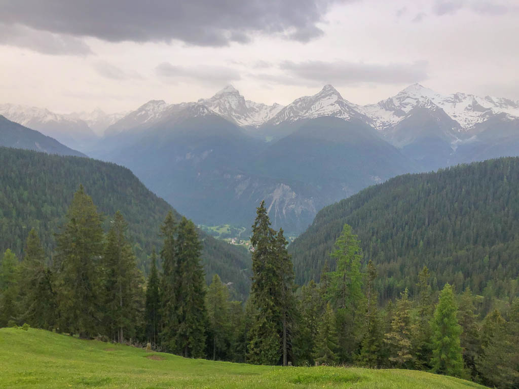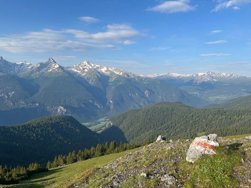 Von der Alp Martüel aus laufe ich über den Fahrweg nach unten und kehre zurück zur Schmittner Alp: