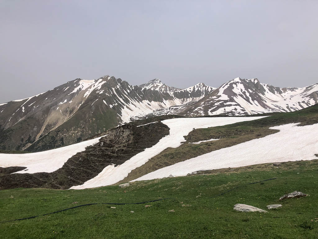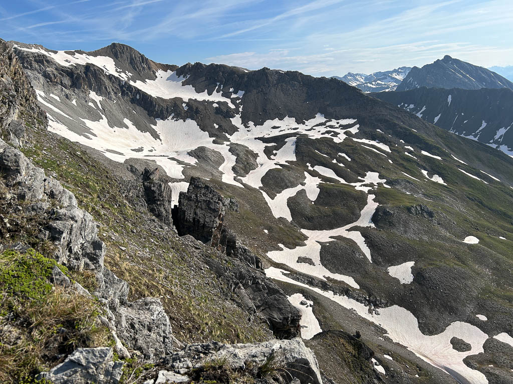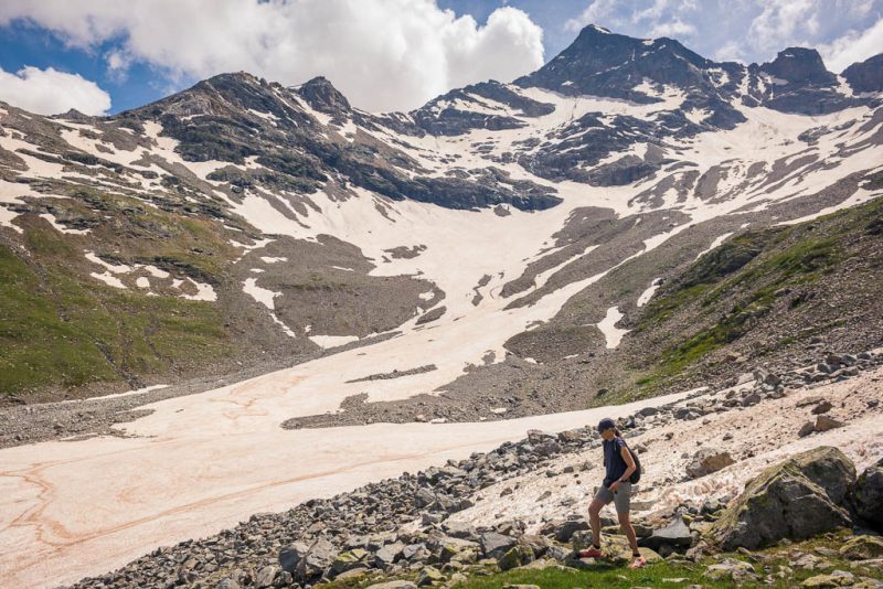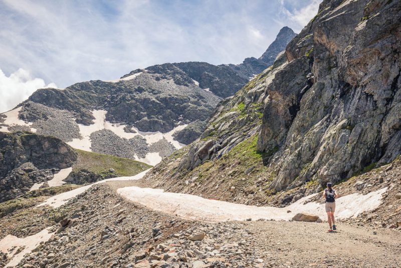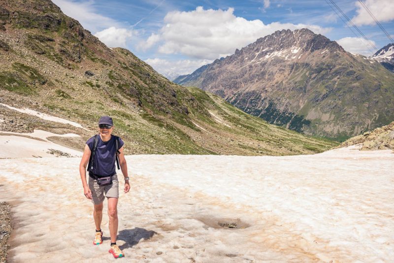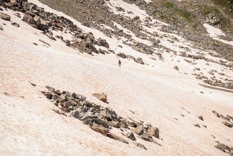 Das nächste Schneefeld auf dem Weg nach oben, das wir aber am linken Rand umgehen können: