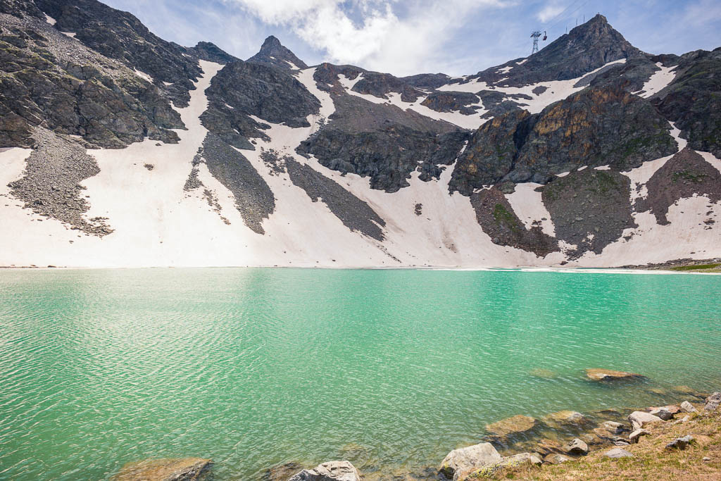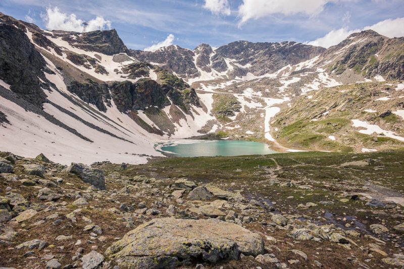 Blick auf den Lej d’Arlas, einem weiteren der zahlreichen Seen im Gebiet der Diavolezza: