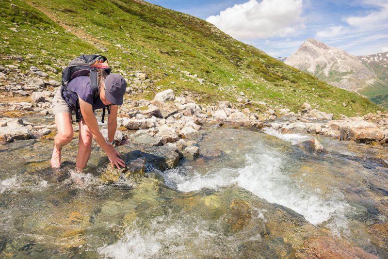 Gott sei Dank gucken immer genug Steine aus dem Wasser hervor, die man als Tritte benutzen kann! Hier ist zur Abwechslung mal Gras und kein Wasser unter unseren Füßen: