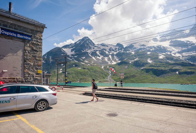 An der Bahnstation „Ospizio Bernina“ endet unsere traumhaft schöne Wanderung über den Lej da Diavolezza: