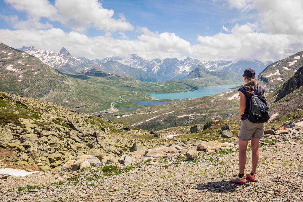 Schon bald liegt erneut der Lago Bianco und unser Ziel, das „Ospizio Bernina“, zu unseren Füßen: