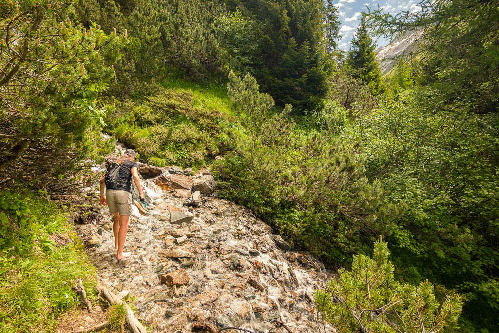 Im weiteren Wegverlauf sind immer wieder kleinere und größere Bachläufe zu überwinden: