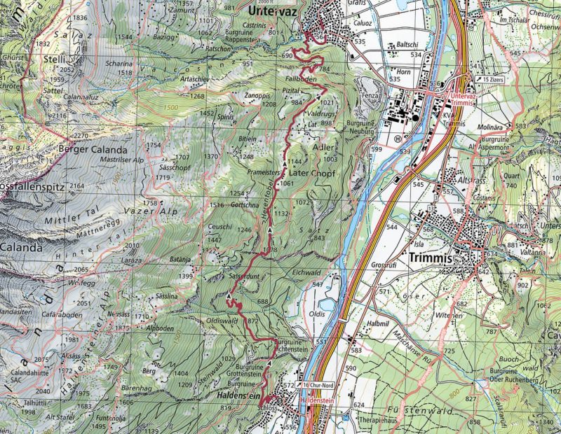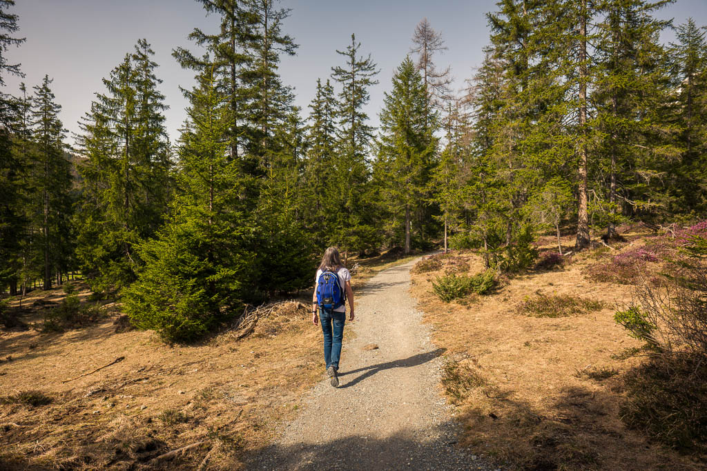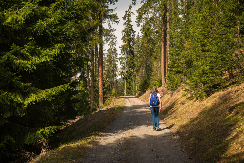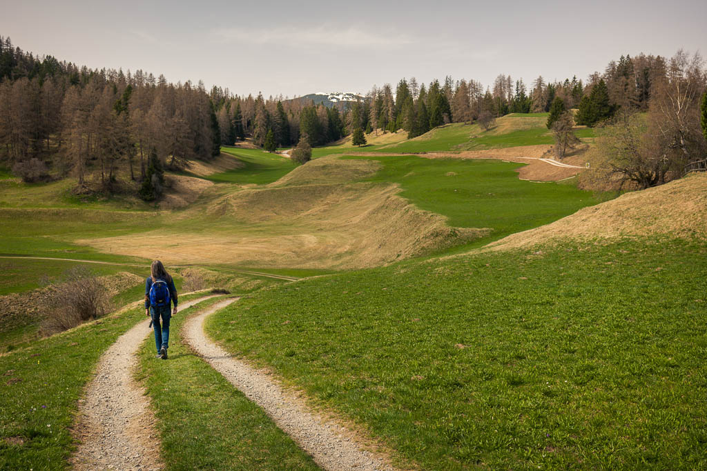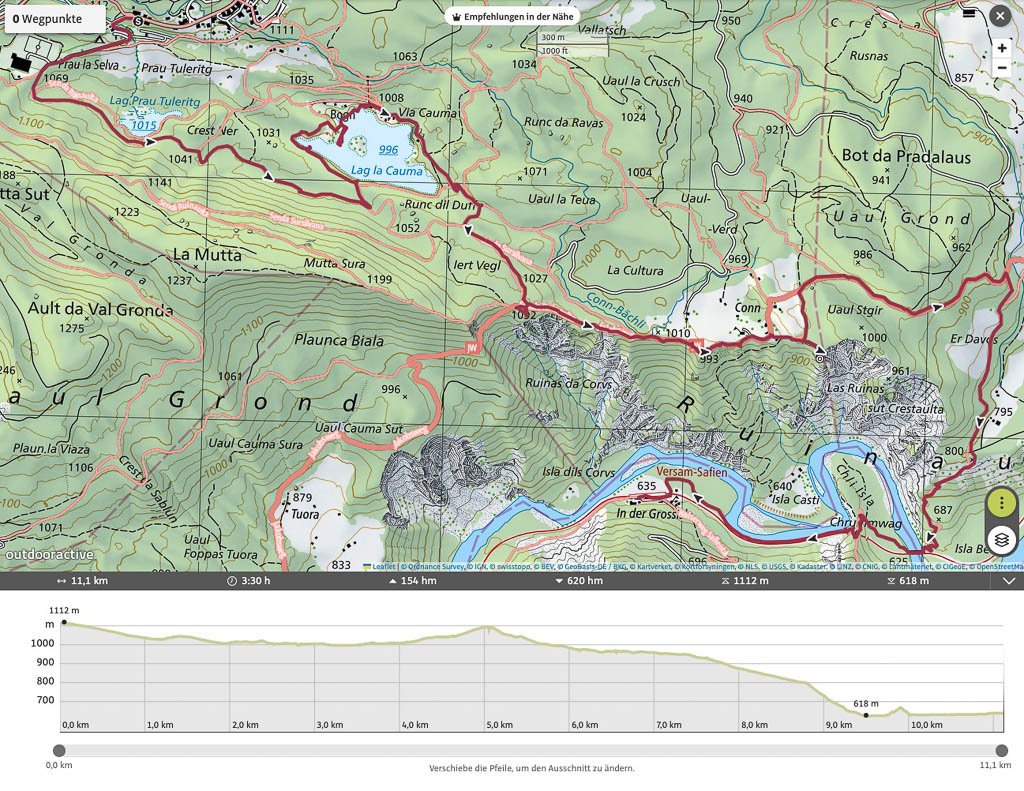 Das Wetter beeinflusst auch heute die Wahl unserer Tour: Die besten Aussichten bietet wieder einmal die Gegend rund um Chur, aber auch Richtung Flims sieht es recht freundlich aus. Flims ist zusammen mit Laax und Falera nicht nur als Wintersportgebiet bekannt, es hat auch im Sommer mit Cauma- und Crestasee, der Rheinschlucht und dem UNESCO-Welterbe „Tektonikarena Sardona“ einiges zu bieten. Es ist schon lange mein Wunsch, diese Gegend näher zu erkunden. Für Touren in höhere Lagen liegt noch zu viel Schnee, aber dem Besuch des Caumasees und der Rheinschlucht steht nichts entgegen. Start unserer Wanderung ist die Bushaltestelle „Flims Waldhaus, Camping“. Von hier aus geht es über einen breiten Fahrweg zuerst zum „Lag Prau Tuleritg“: