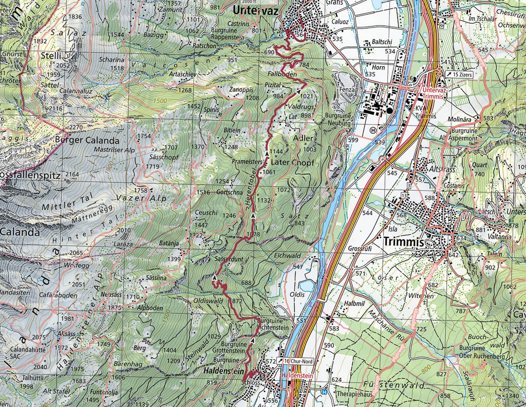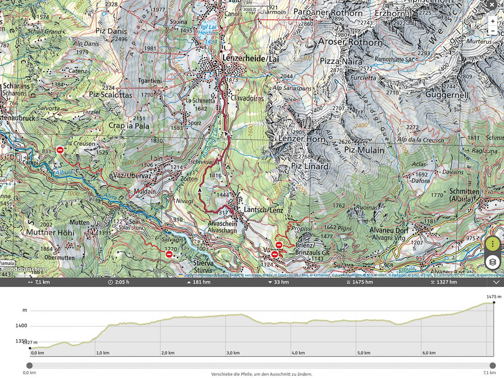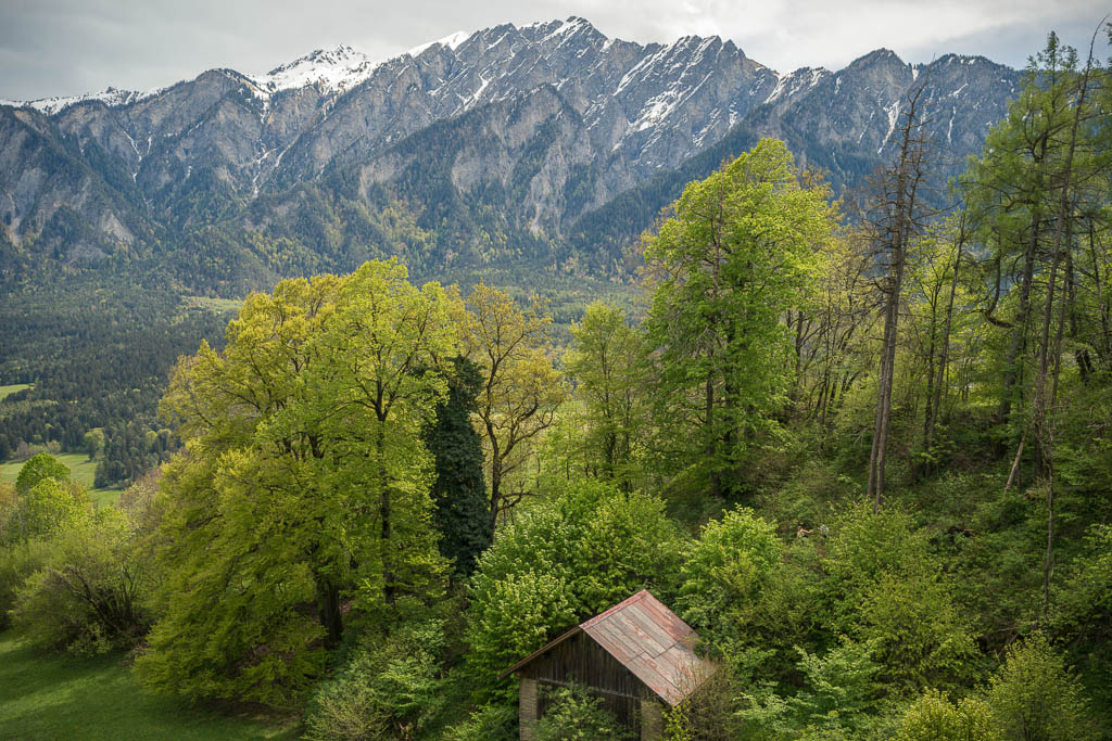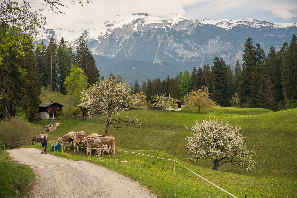Das Wetter beeinflusst auch heute die Wahl unserer Tour: Die besten Aussichten bietet wieder einmal die Gegend rund um Chur, aber auch Richtung Flims sieht es recht freundlich aus. Flims ist zusammen mit Laax und Falera nicht nur als Wintersportgebiet bekannt, es hat auch im Sommer mit Cauma- und Crestasee, der Rheinschlucht und dem UNESCO-Welterbe „Tektonikarena Sardona“ einiges zu bieten. Es ist schon lange mein Wunsch, diese Gegend näher zu erkunden. Für Touren in höhere Lagen liegt noch zu viel Schnee, aber dem Besuch des Caumasees und der Rheinschlucht steht nichts entgegen. Start unserer Wanderung ist die Bushaltestelle „Flims Waldhaus, Camping“. Von hier aus geht es über einen breiten Fahrweg zuerst zum „Lag Prau Tuleritg“: