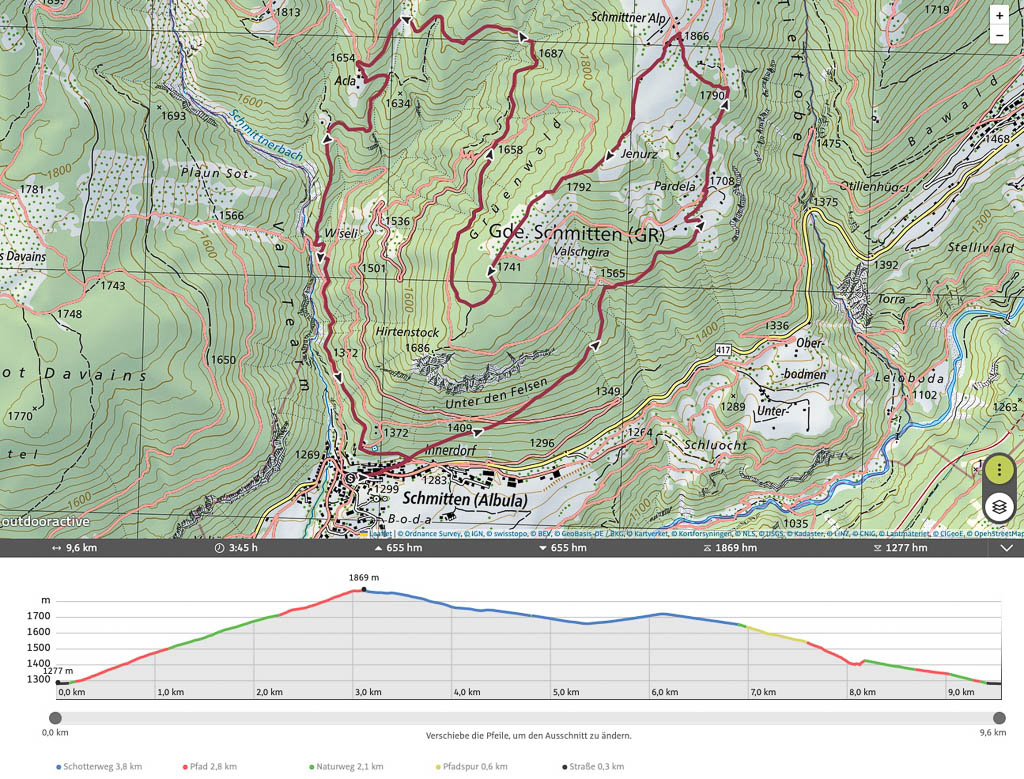 So sieht der rund fast sieben Kilometer lange Burgenrundgang im Überblick aus: