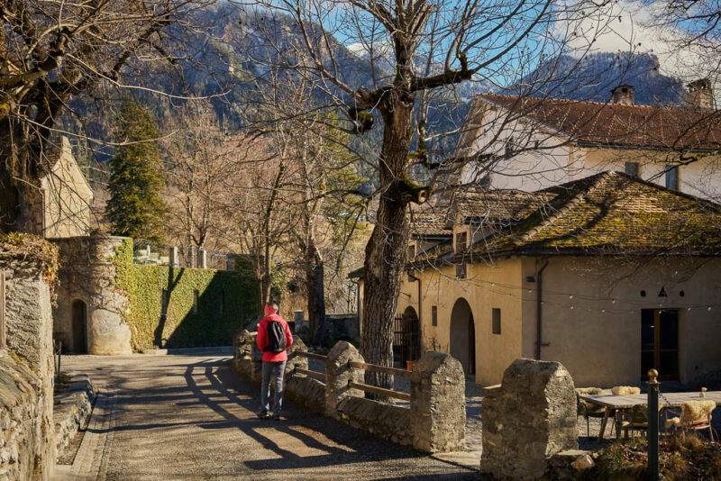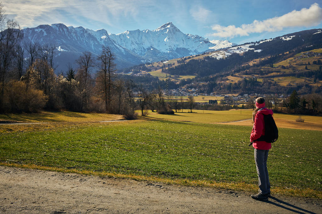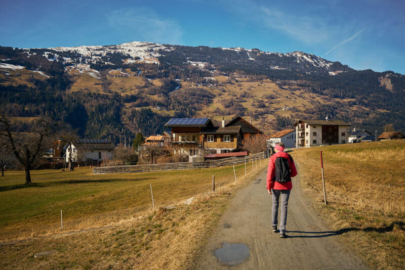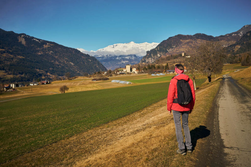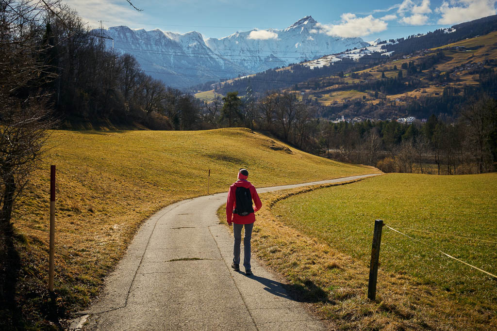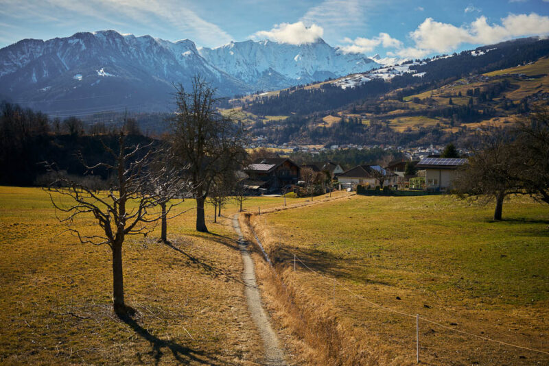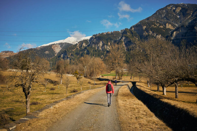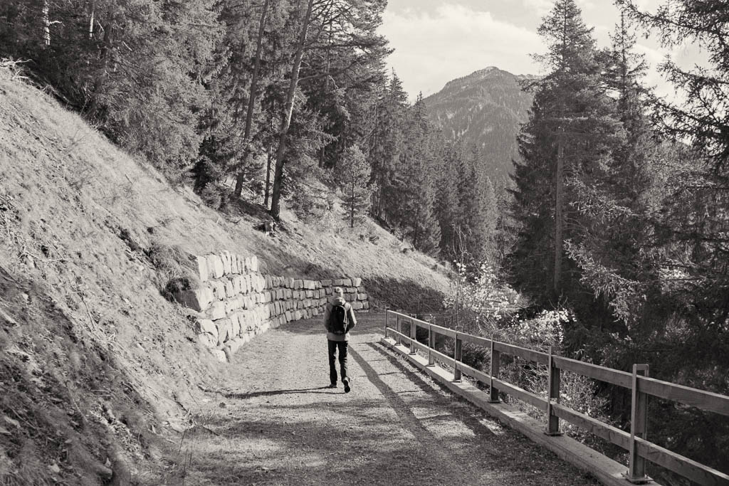 Fürstenaubruck (früher oft auch „Zollbrugg“ genannt) war jahrhundertelang ein Nadelöhr des europäischen Alpenverkehrs. Hier traf die Route vom Schinpass (Albula/Septimer) auf die Nord-Süd-Achse zum Splügen und San Bernardino. Wer den Rhein überqueren wollte, musste hier vorbei. Erst als im 19. Jahrhundert die moderne „Commercialstrasse“ auf der linken Rheinseite über Thusis ausgebaut wurde, verlor die Brücke bei Fürstenaubruck ihre zentrale Rolle. Heute erinnert der Name des Weilers noch an die einstige Brücke, die für den Handel und das Bistum Chur von unschätzbarem Wert war. Von Fürstenaubruck aus geht es ein kleines Stück dem Rhein entlang, bevor wir diesen wieder überqueren und zu unserem Ausgangspunkt zurückkehren.