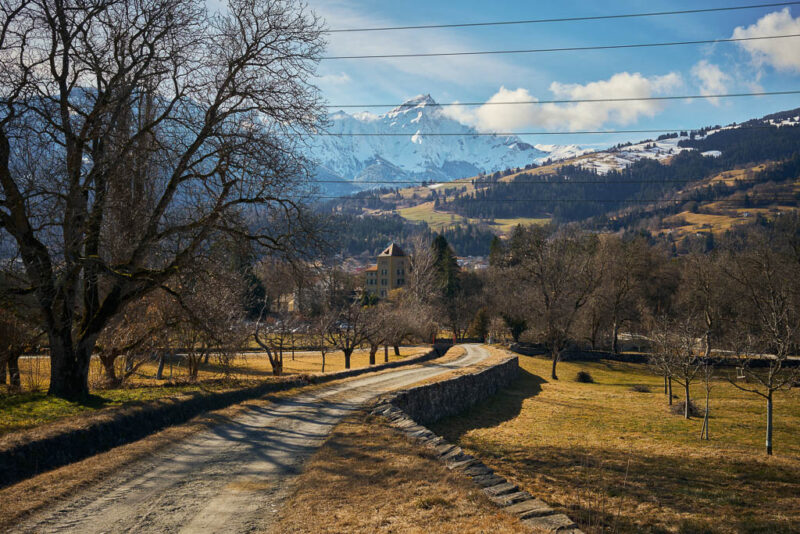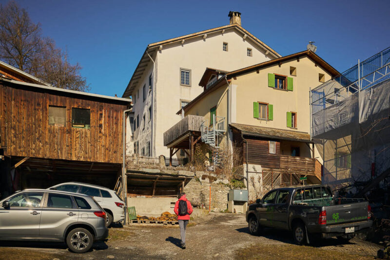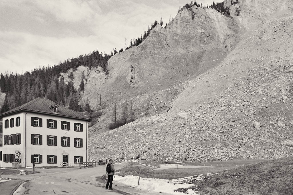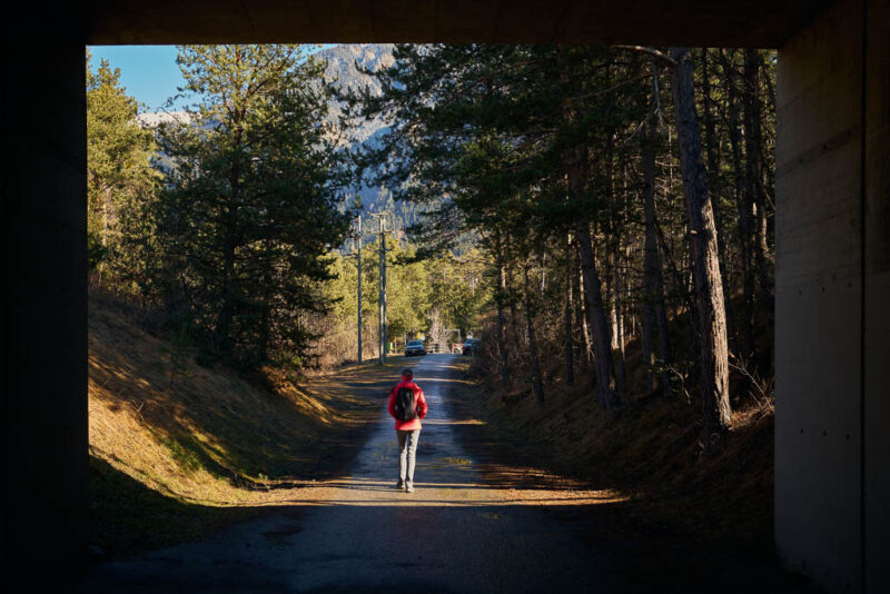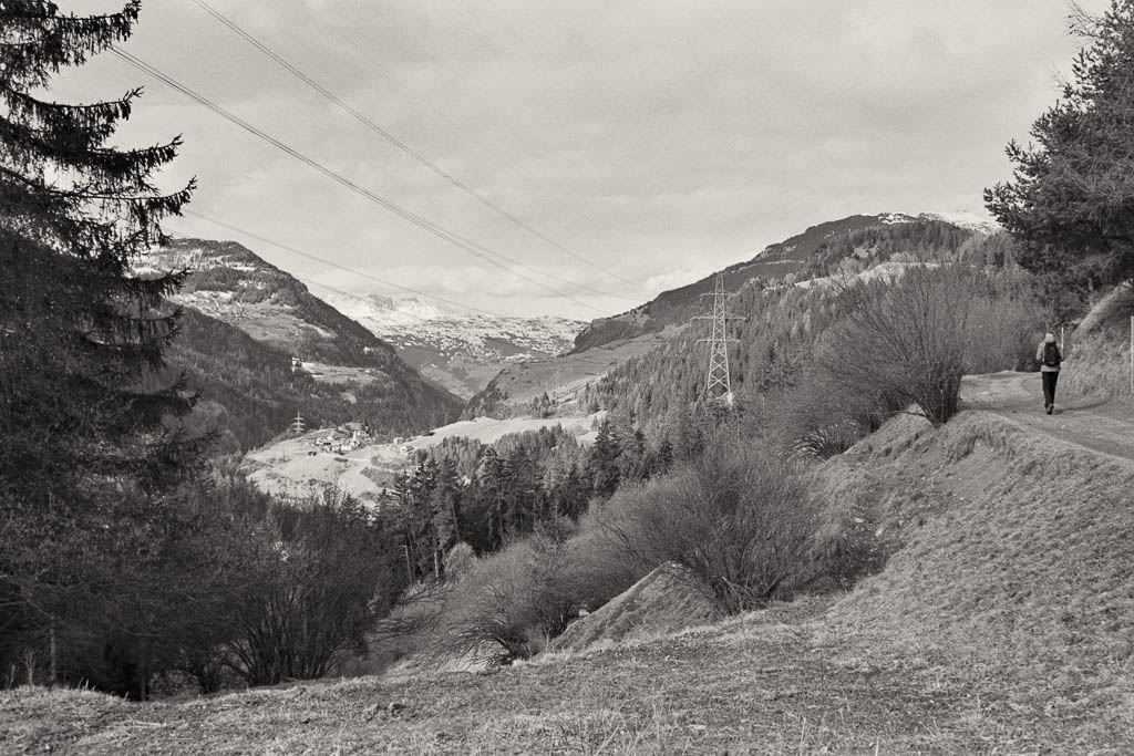Das Kraftwerk in Sils ist ein echtes Energie-Schwergewicht und gehört zu den produktionsstärksten Wasserkraftwerken der Schweiz. Die Zentrale wurde bereits 1910 durch die Stadt Zürich in Betrieb genommen, um den hohen Energiebedarf der Stadt zu decken. Später kamen die Anlagen der Kraftwerke Hinterrhein (KHR) hinzu. Beeindruckend ist der massive Industriebau, der einen spannenden Kontrast zu den mittelalterlichen Burgen der Umgebung bildet. Vom Kraftwerk aus geht es steil nach oben, bis wir auf die nach Parnegl führende Straße treffen und dieser hinunter nach Fürstenaubruck folgen: