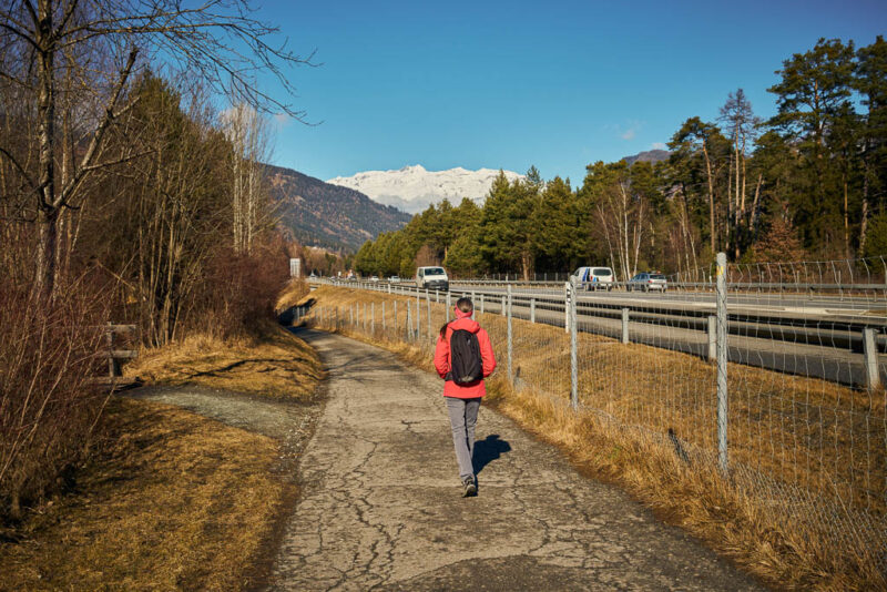 Der heutige Spaziergang beginnt an der Autobahnraststätte „Via Mala“ bei Thusis. Wir folgen von hier aus dem Nollakanalweg bis zum Schwimmbad von Thusis: