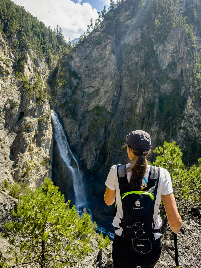 Momentaufnahmen von der Strecke, beginnend mit einem Blick auf den unteren Wasserfall des Schaftobels: