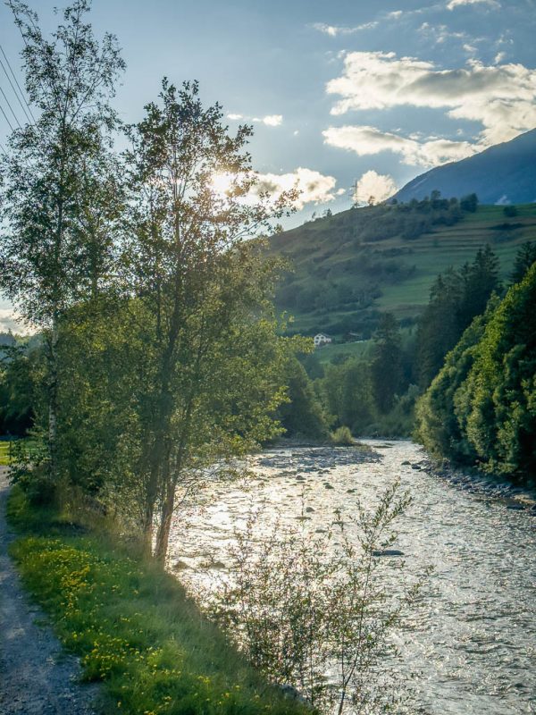 Abendstimmung an der Albula kurz vor Alvaneu Bad:
